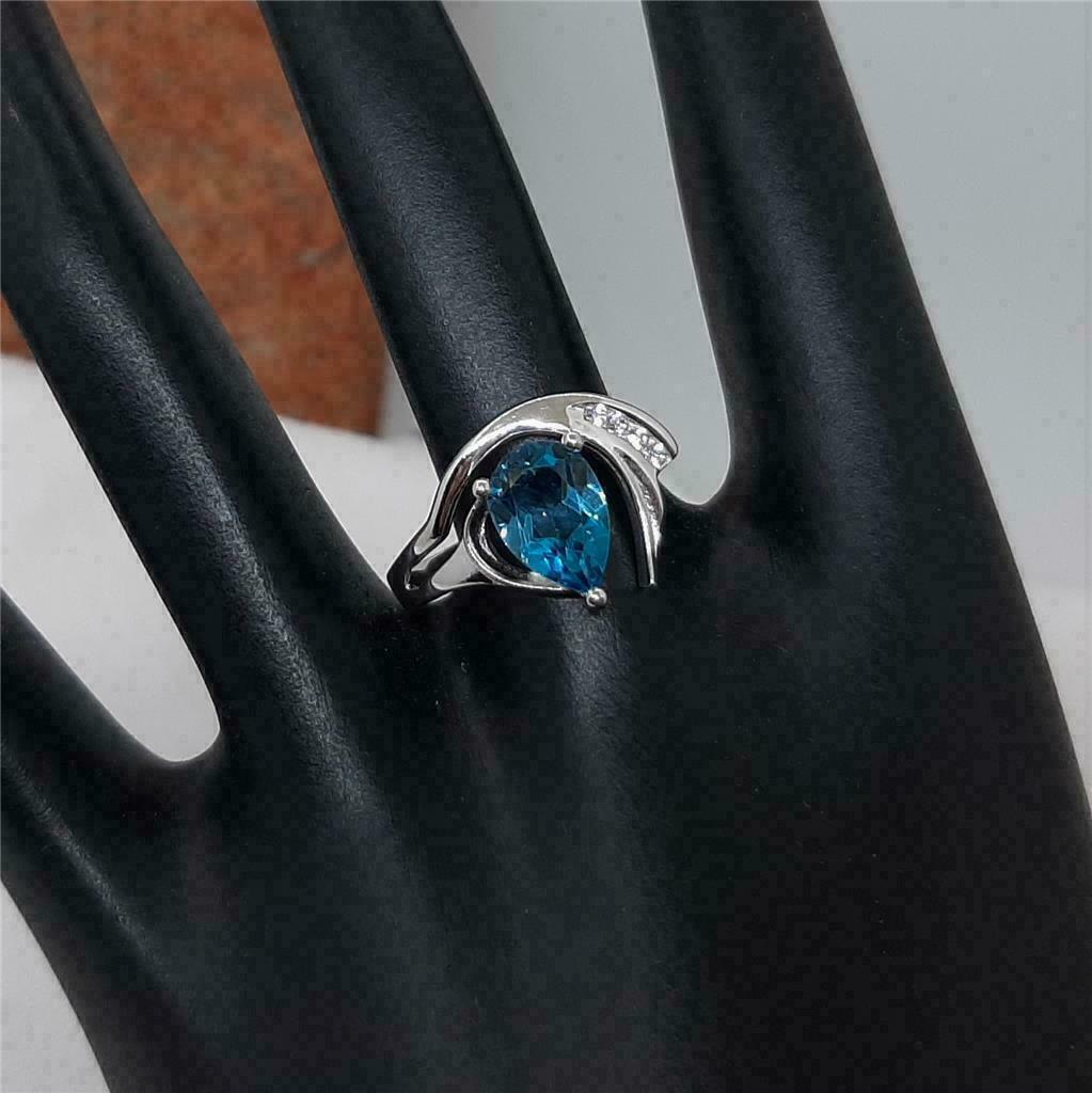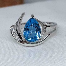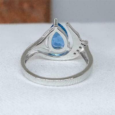 Bague de fiançailles solitaire topaze bleue taille poire 2,50 ct en...