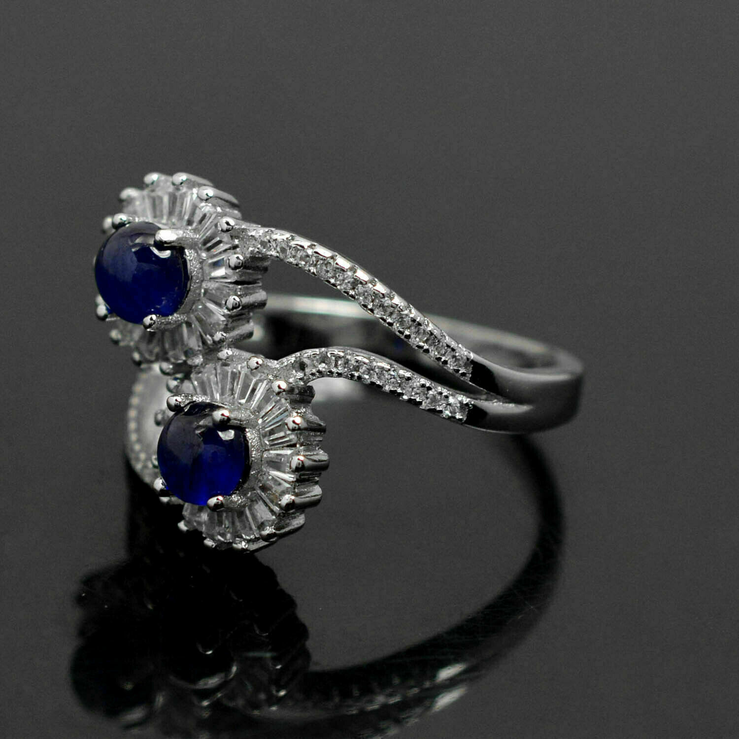 Anillo de bodas de compromiso con halo de zafiro de talla redonda de 1,50...