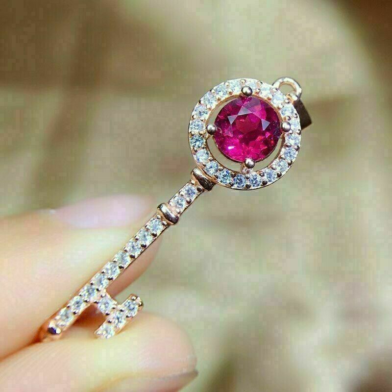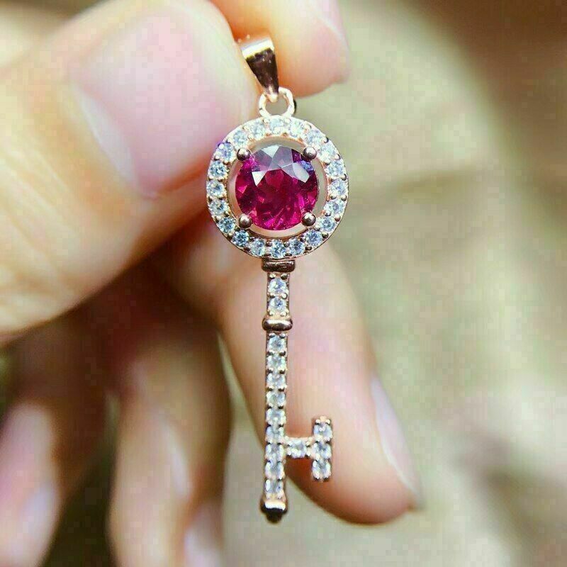 Ciondolo a forma di chiave con rubino rosa a taglio rotondo da 1,20 ct,...