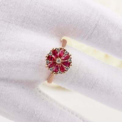 Anello di fidanzamento a forma di fiore rosso rubino taglio marquise da...