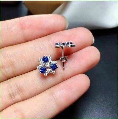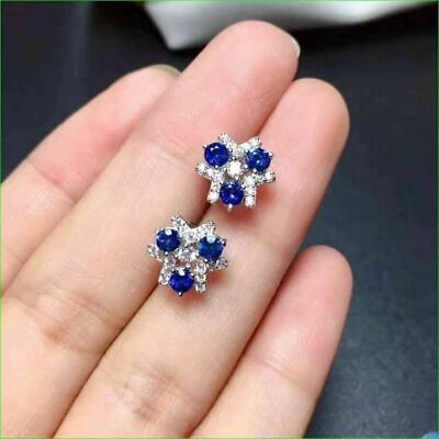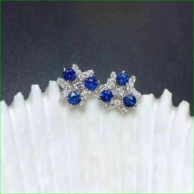Pendientes de tuerca con solitario de zafiro azul de talla redonda de 2,50...