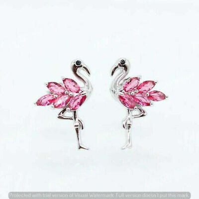 Aretes de zafiro rosa de talla marquesa de 1,50 quilates con flamenco y...