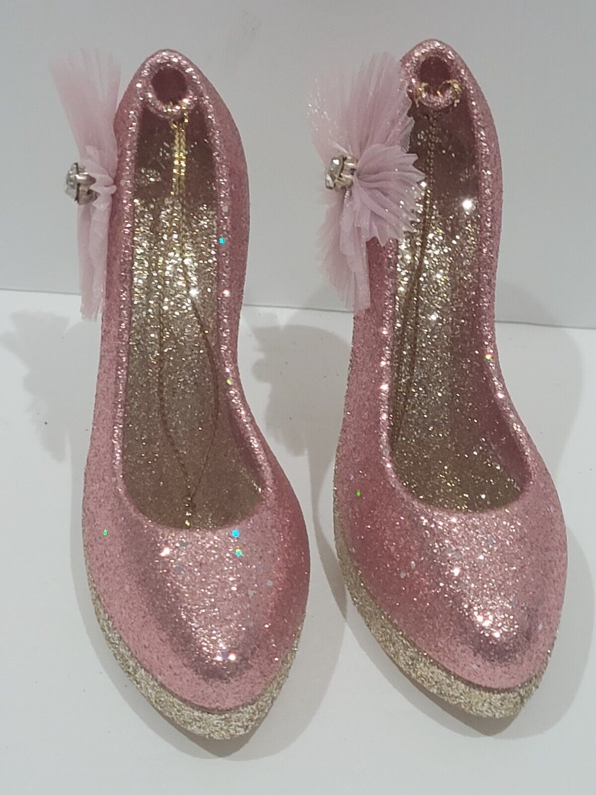 Christmas Shabby Chic Rose Gold Blush Glitter High Heel Shoes Ornaments Pink 2pc