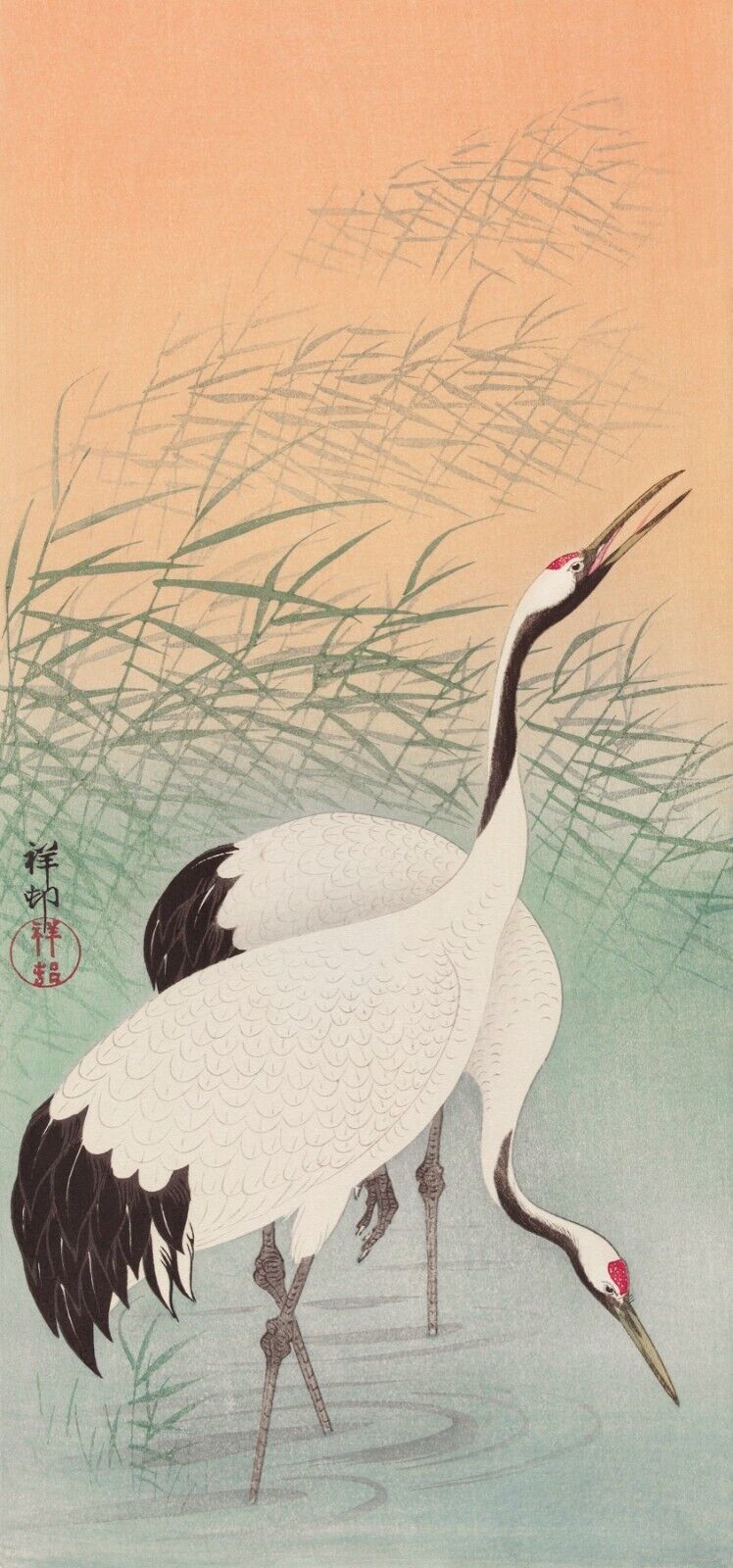 13260.Wall Decor Poster.Oriental Asian design.Japan Ohara Koson painting.Cranes