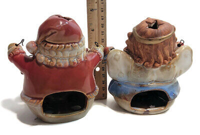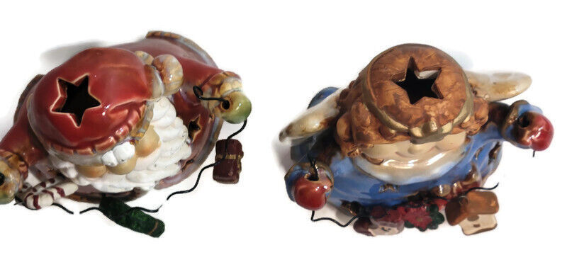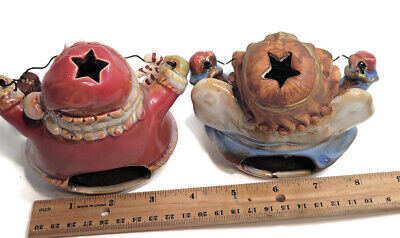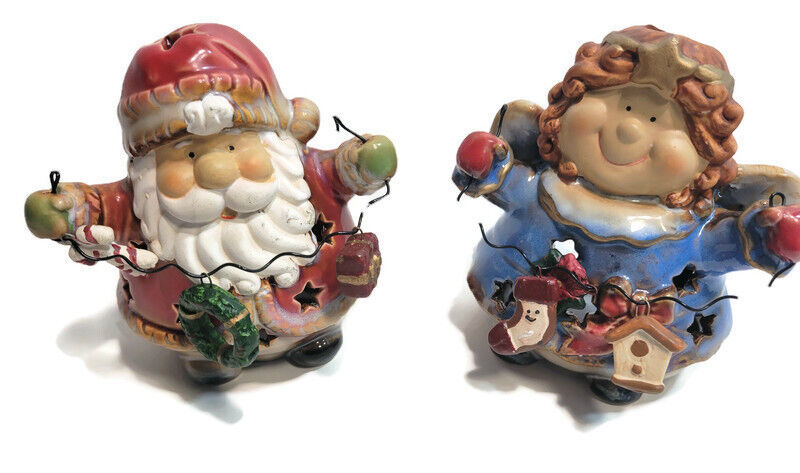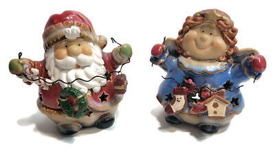 Santa & Angel Christmas Holiday Tea-Light Candle Holder 4.5" Tall Decoration