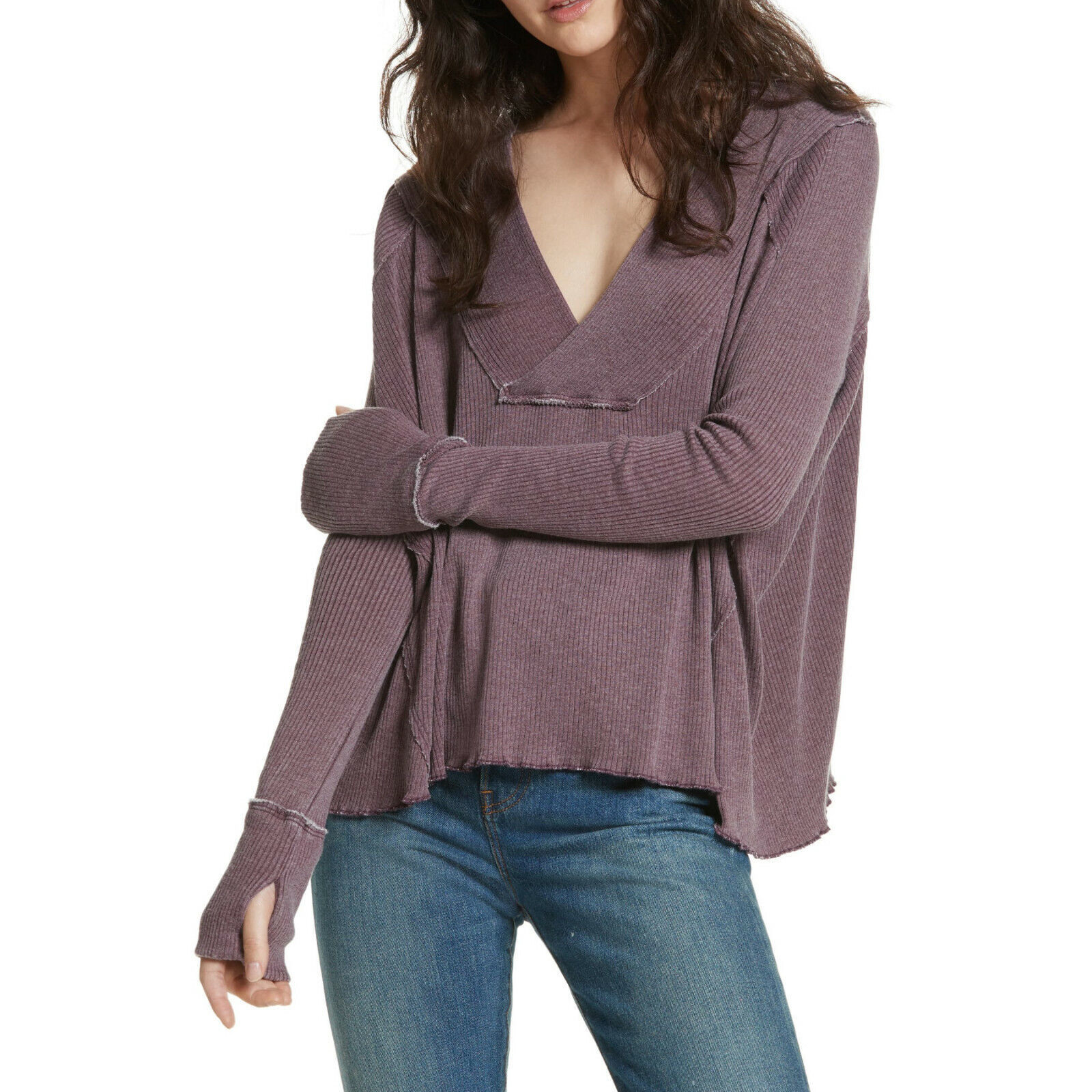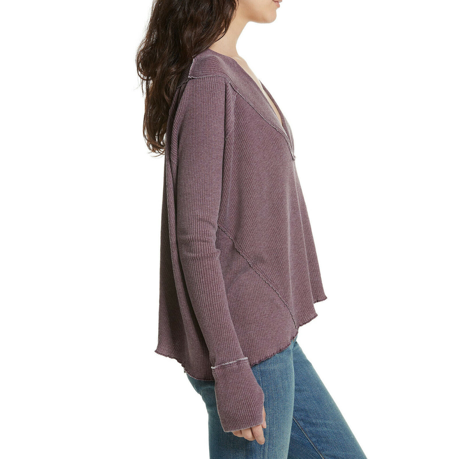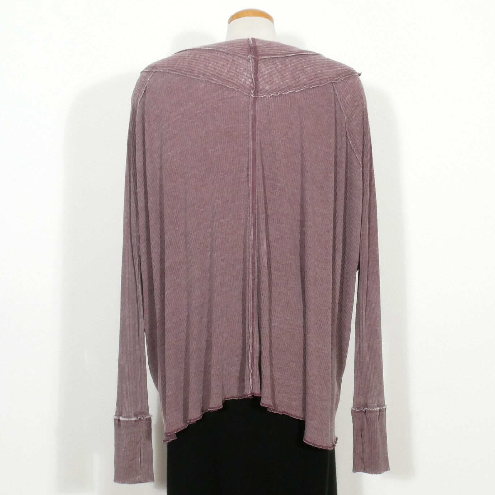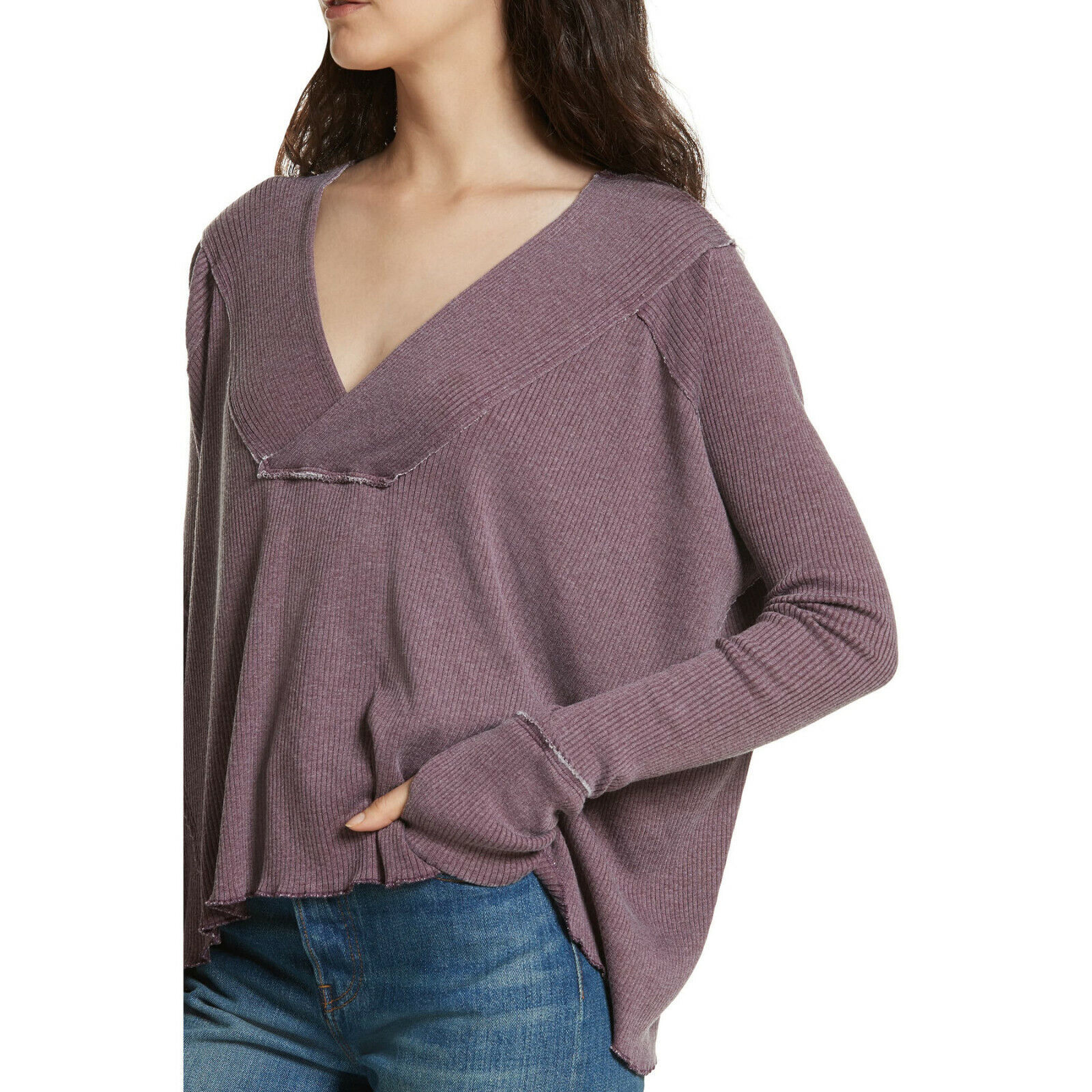 FREE PEOPLE Wine Purple Oceanview Plunging V-Neck Slouchy Cotton Blend Rib Top L
