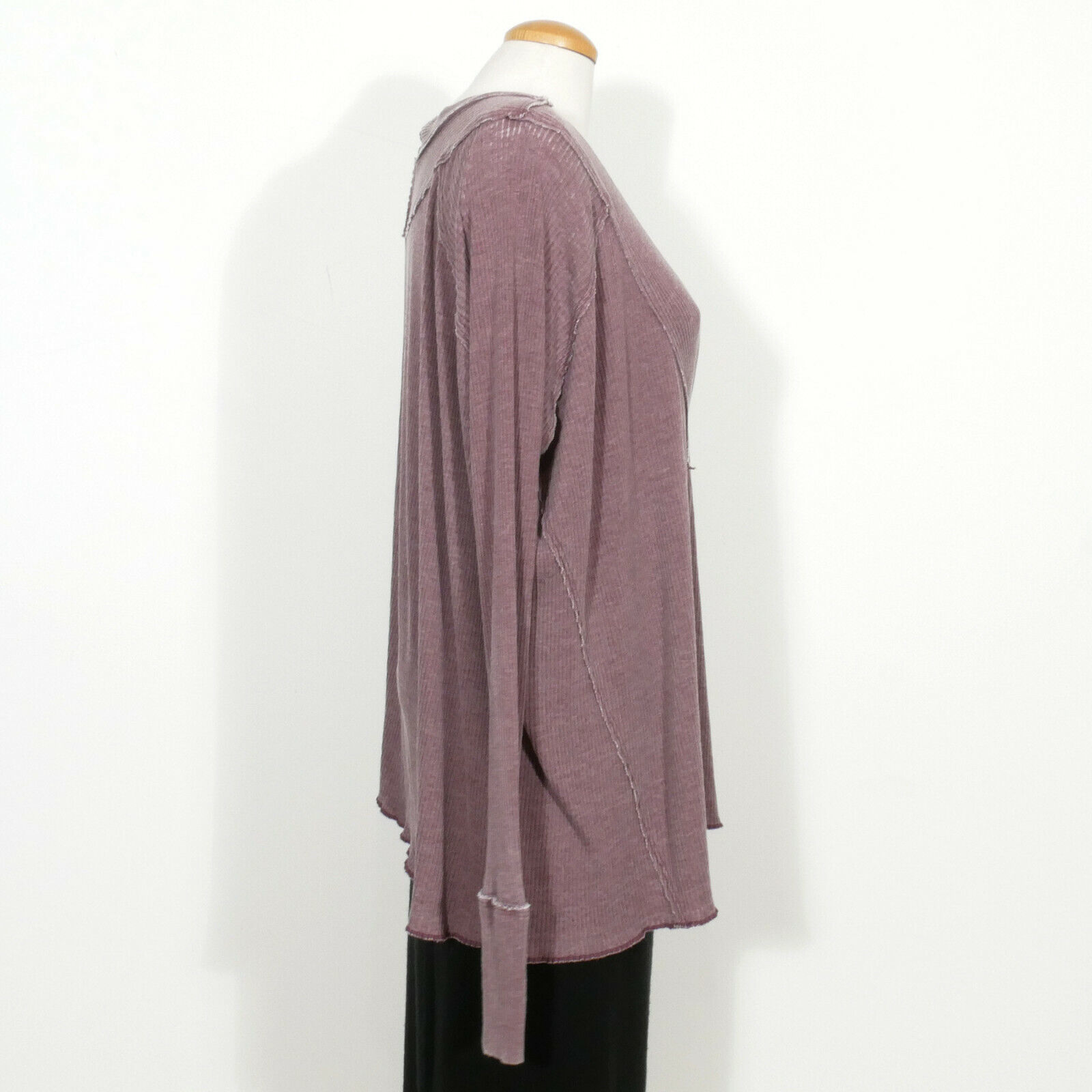 Wine Purple Oceanview Plunging V-Neck Slouchy Cotton Blend Rib Top L