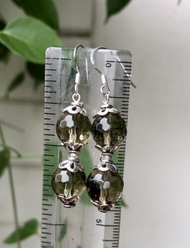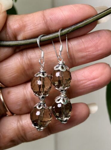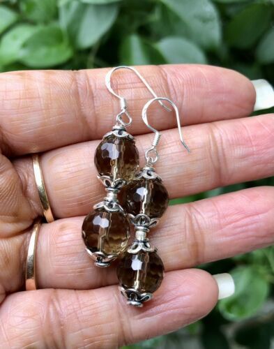 925 Sterling Silver + 10 mm Rnd Beads Original Smoky Topaz Quartz Earrings 2