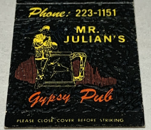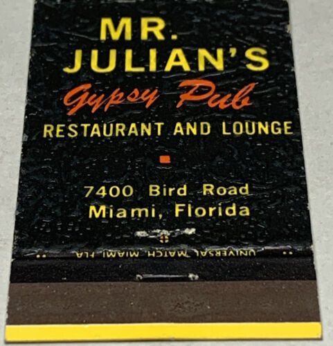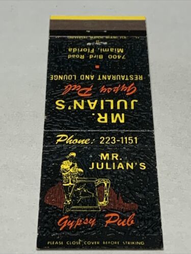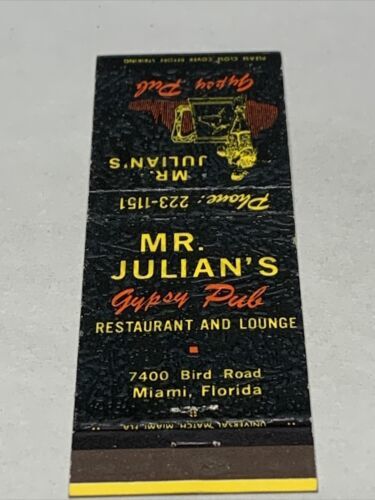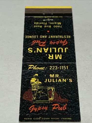 Vintage Matchbook Cover Mr.Julian’s Gypsy Pub Restaurant Miami, Fl gmg unstruck
