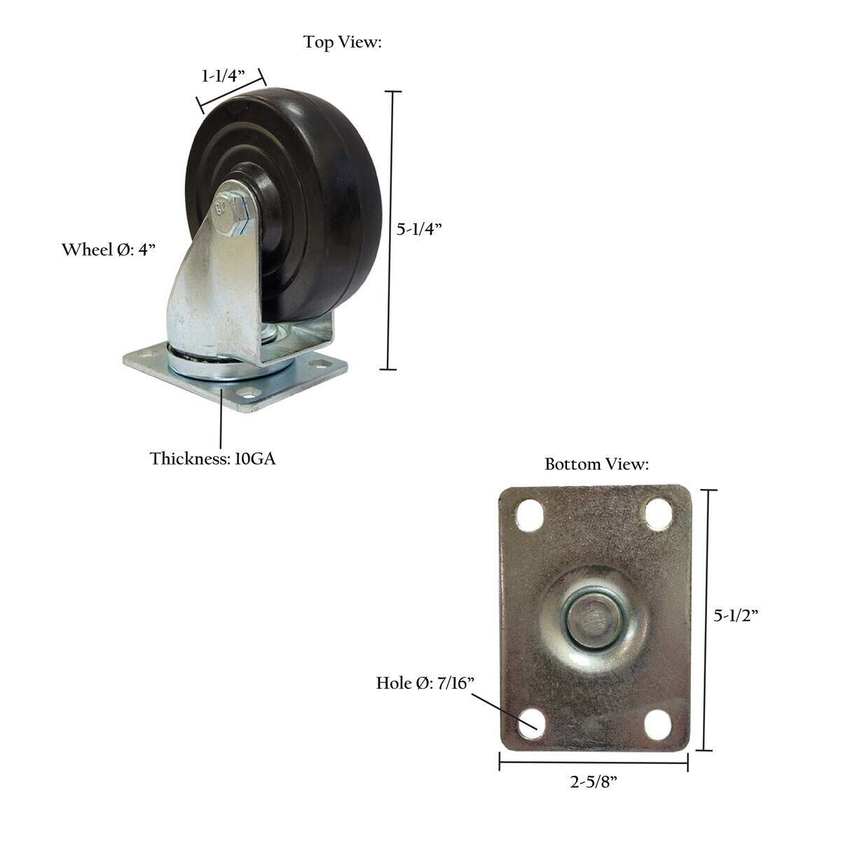 4" Swivel Caster Rubber Wheel Plate 3 3/4" x 2 3/4" Maneuvering Cargo Quick Easy