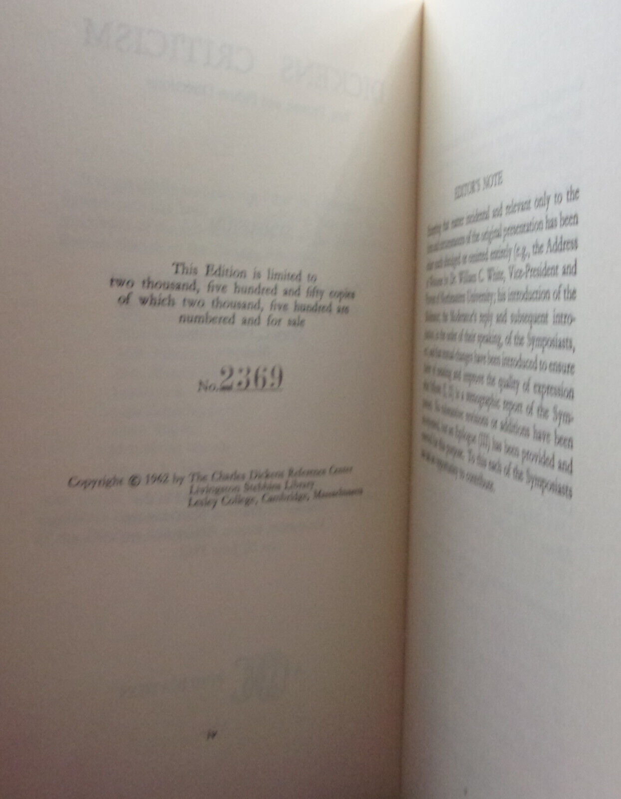 At the 56th Annual Conference of the Dickens Fellowship, Held in the Alumni Auditorium, Northeastern University, Boston, Massachusetts, on 10 June 1962.