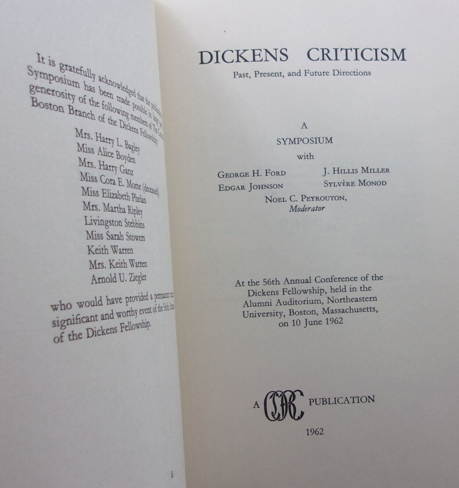 by Edgar Johnson, George H. Ford, J. Hillis Miller, Sylvere Monod, and Noel C. Peyrouton, moderator.