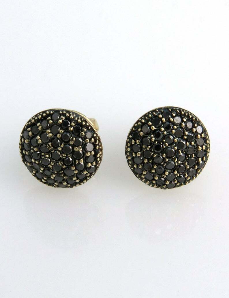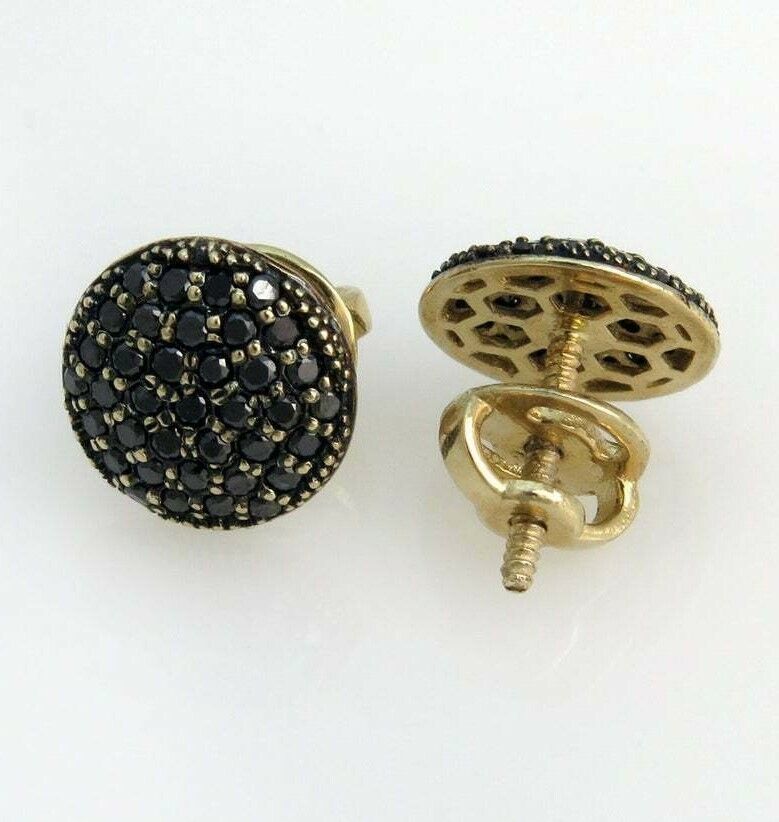 2Ct Brillante Redondo Corte Diamante Negro en Racimo Pendientes 14K Oro Amarillo