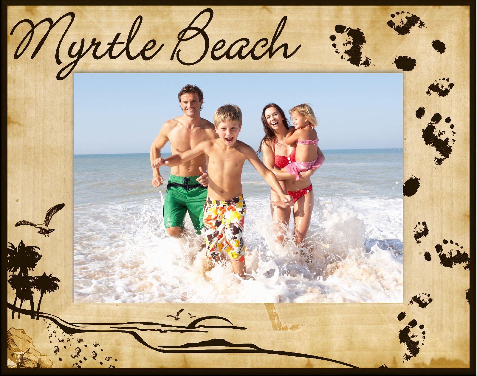 Myrtle Beach South Carolina Footprints Laser Engraved Wood Picture Frame Landscape (8 x 10)