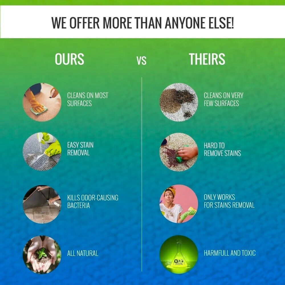 TOUGH GREASE DIRTY GLASS DUSTY CARPET UGH! DON?T WORRY we got your back this MULTI surface UNIQUE PRODUCT cleaner absolutely takes out tough dirt, grime, oil and grease. Cleans counter, carpet, floors, fabric, equipment and cars. Pure cleaing in most interiors like bathrooms, kitchens, glass, windows, tile, furniture, walls, porcelain, plastics and more. Yup you got it right NO MORE STAINS.