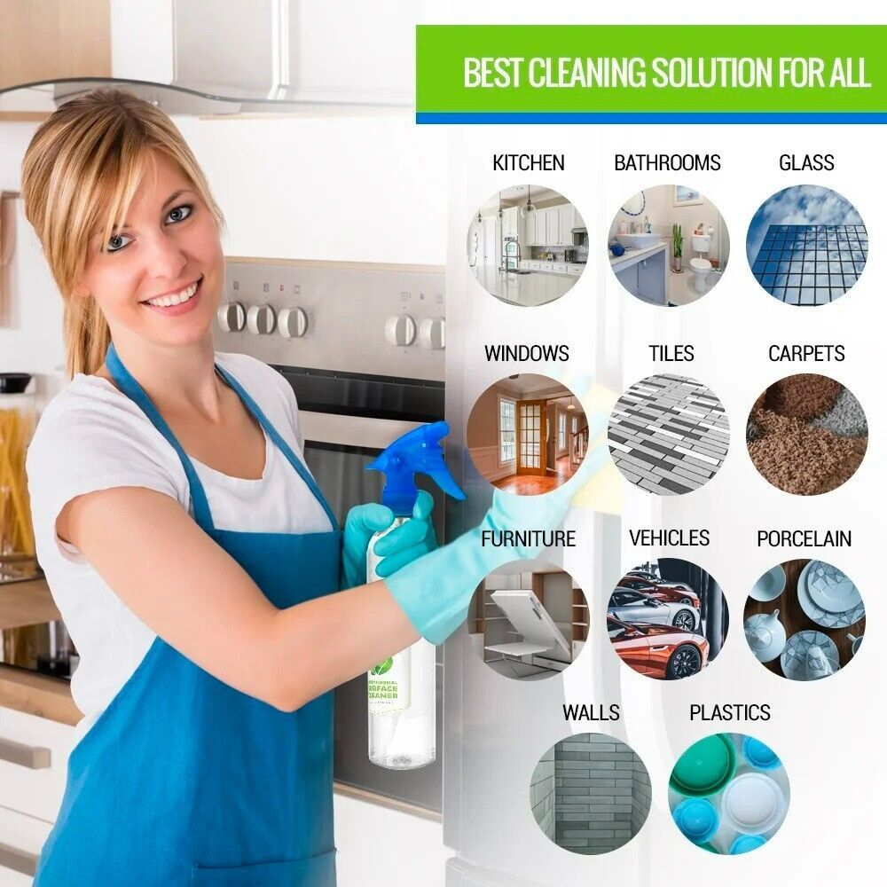 Make every home cleaning job safe and effective. Simply Natural All-Purpose Cleaner is made with a special blend of all-natural and non-toxic ingredients. It is super concentrated industrial cleaner, deodorizer. You can use it on all washable surfaces that can be found in the kitchen, bath area. Great for cleaning, glass, mirrors, walls, doors, sink, tubs, tile, furniture, appliances, Formica, plastic and removing spots and stains from carpets and upholstery. It efficiently removes dirt, grease, grime and more including kitchen and food grease, food and beverage stains and spots. Includes enough concentrate to fill 16 bottles or 512 oz of cleaning solution!