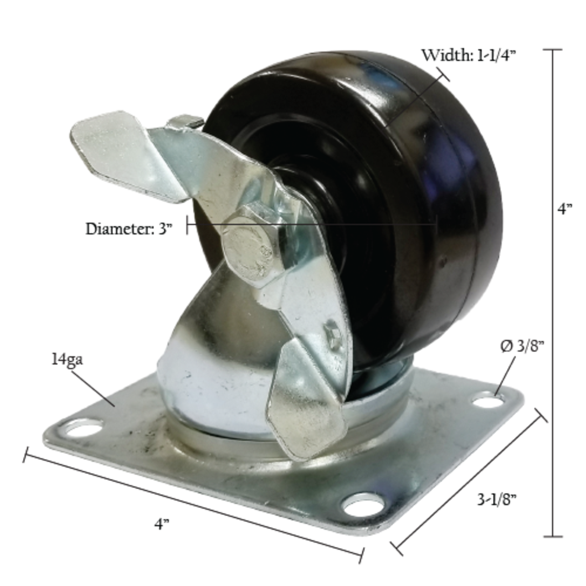 3" Lockable Swivel Rubber Wheel Caster 4" x 3" Pla |