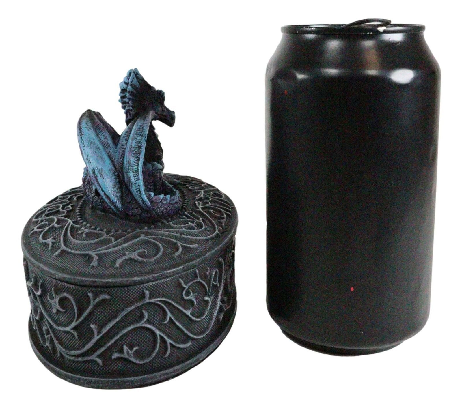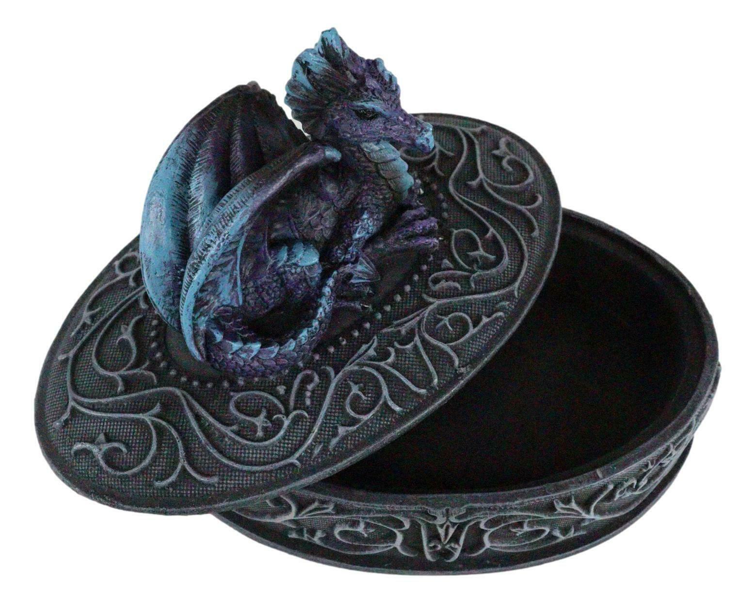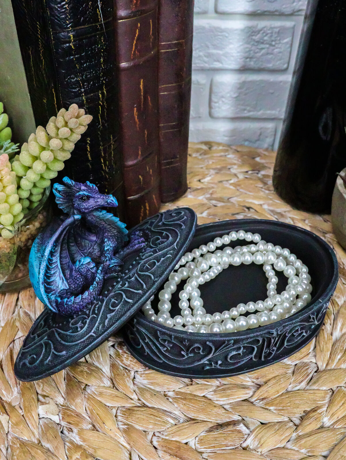 Ebros Fearsome Guardian Midnight Blue Dragon Oval Jewelry Trinket Box Figurine