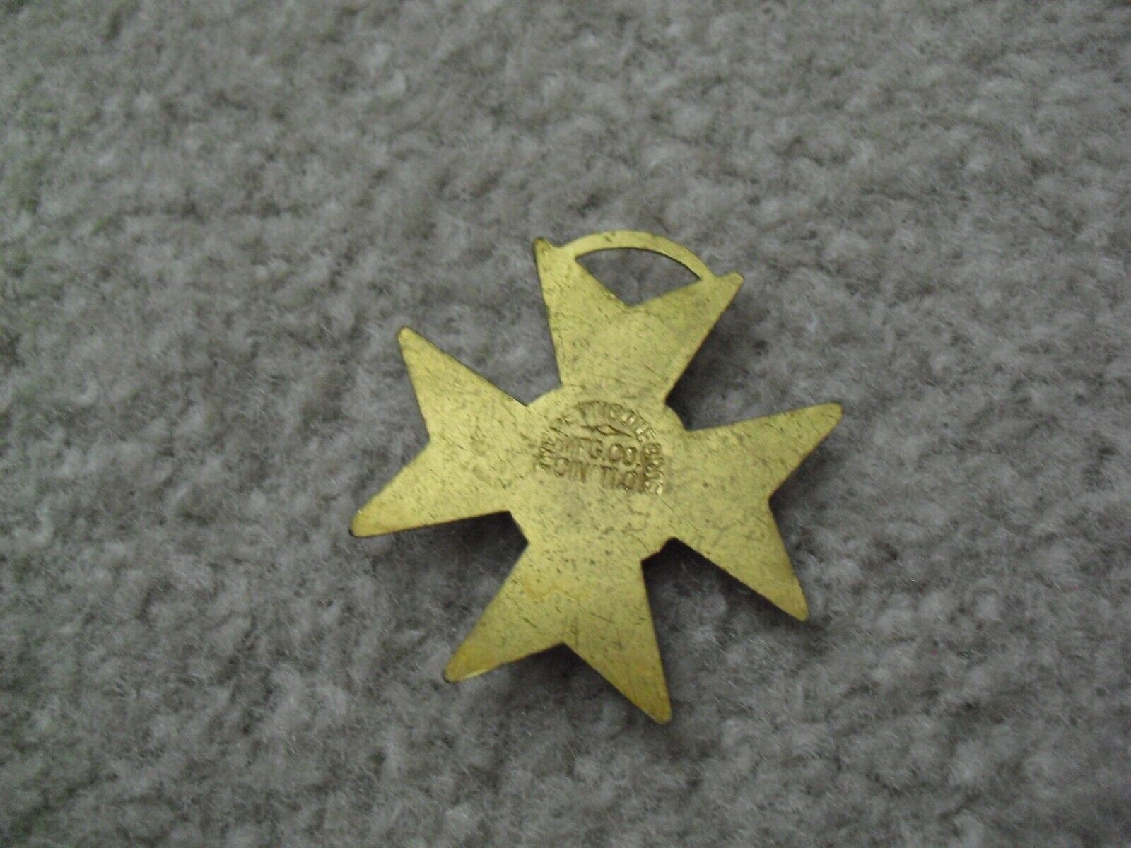 You are bidding on a cool and very hard to find, circa 1900 to 1930s, hard to pinpoint, gold tone metal, back marked The Pettibone Bros Mfg Co Cin'ti O. star shaped enameled front, award medal or pendant in the pictures. 1 7/8 inches wide. Very good shape, some light wear throughout from use, crazing on the front white enameled parts, could use a fine cleaning and polishing. Zoom in for details.