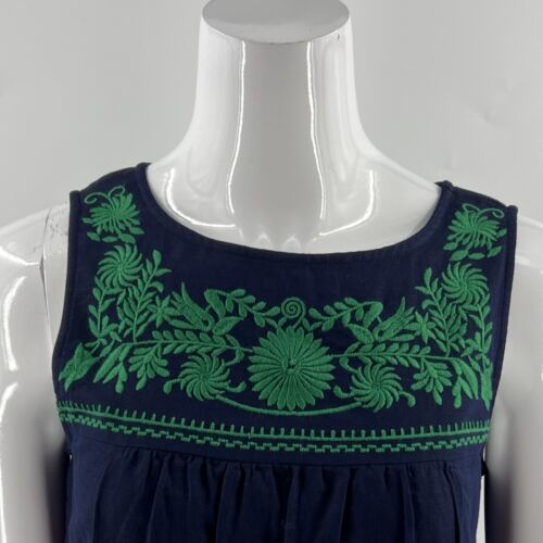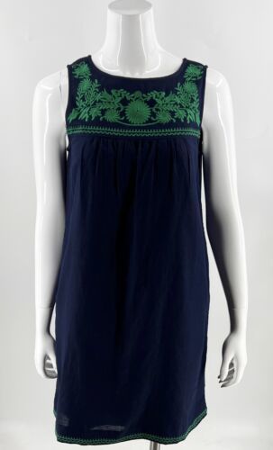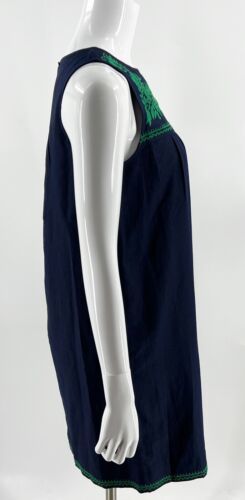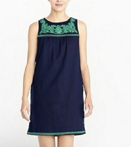 J Crew Factory Shift Dress XS Navy Blue Green Embroidered Linen Blend Pockets