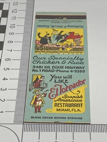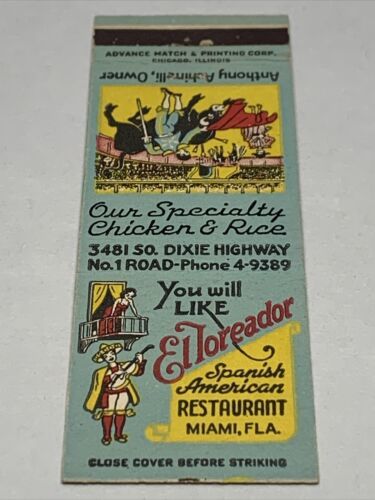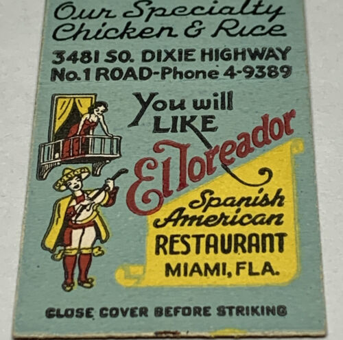 Front Strike Matchbook Cover El Toreador Spanish Restaurant Miami,Florida gmg