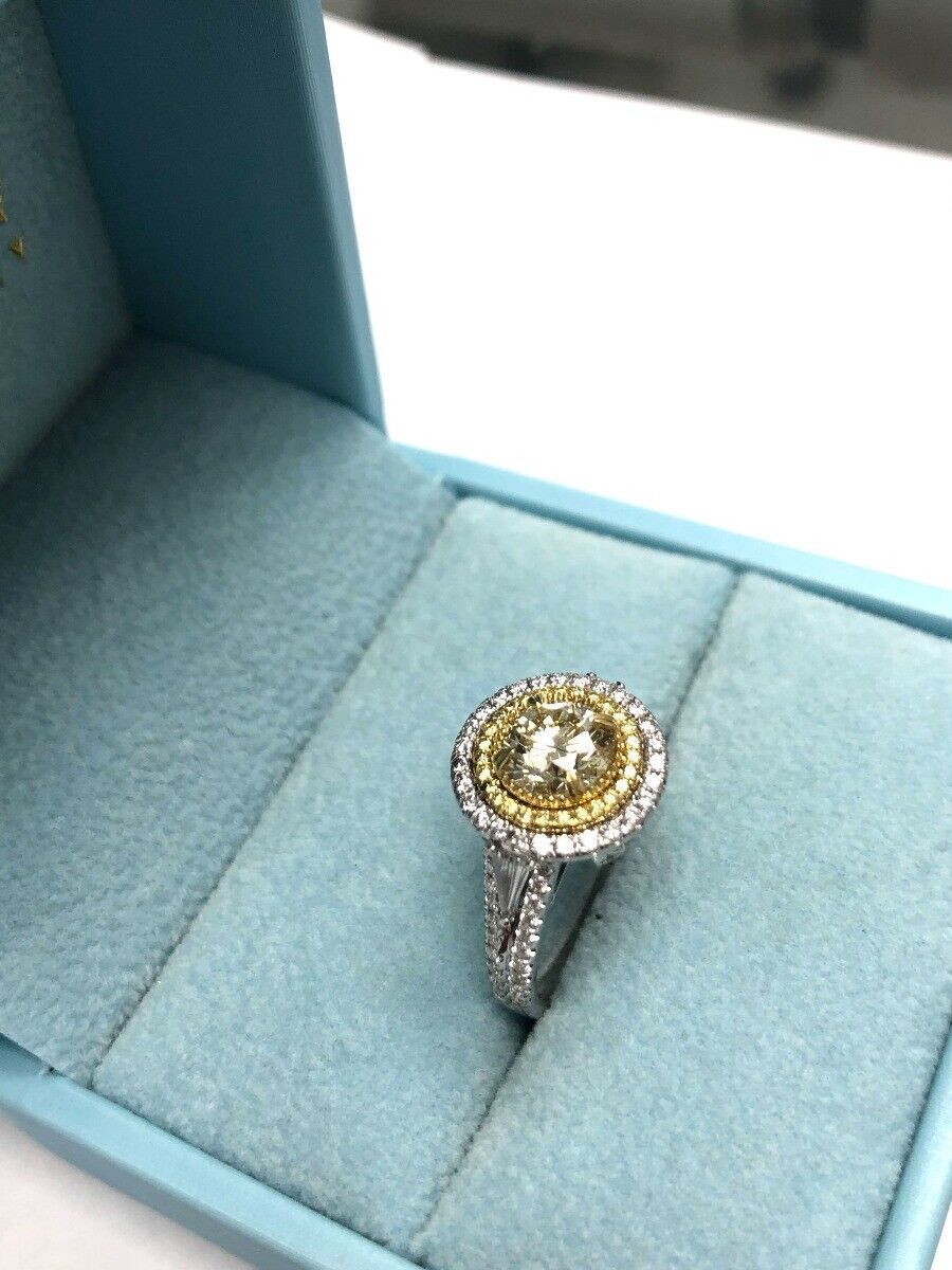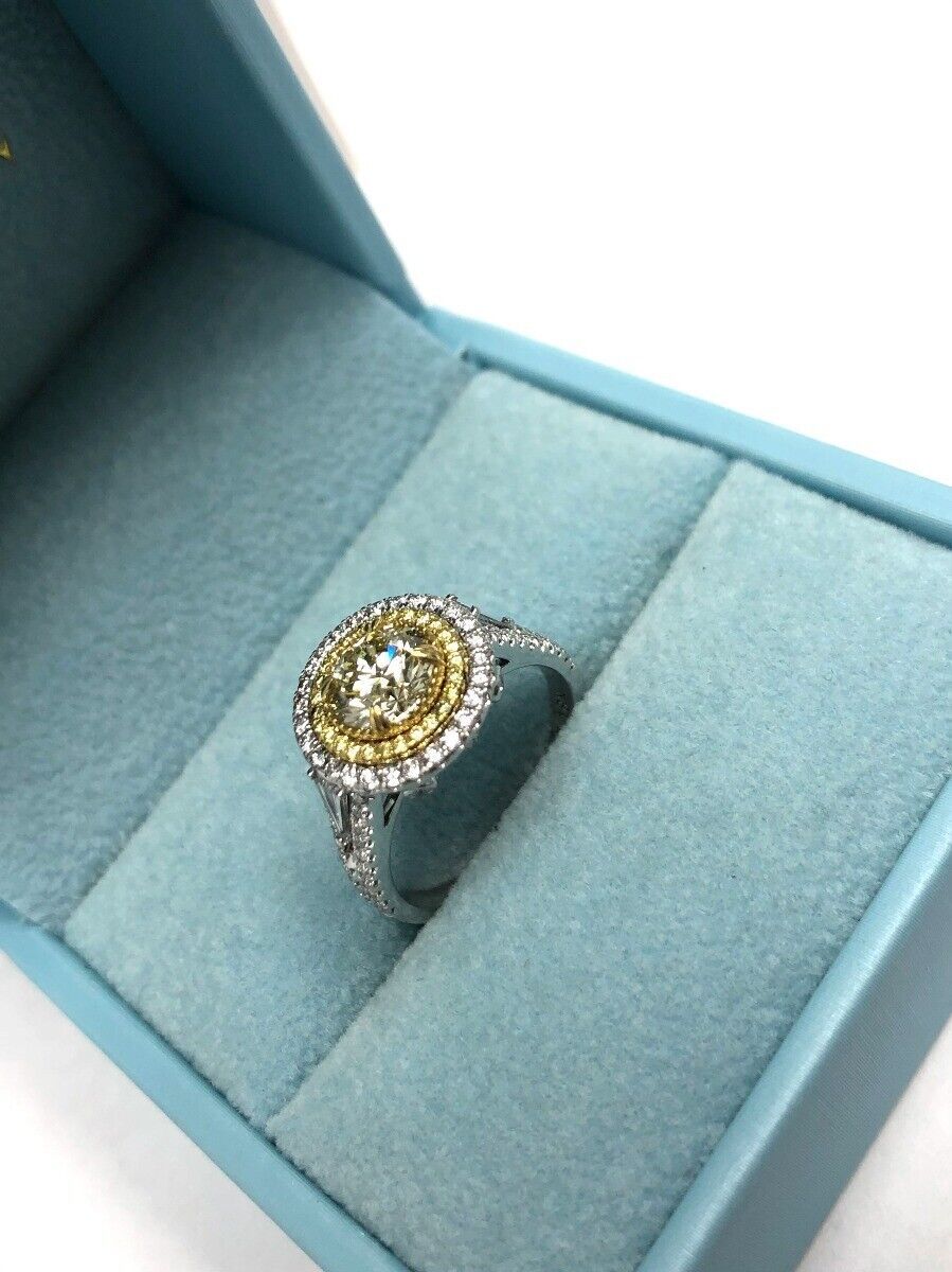 1.96 CT Round Light Yellow Diamond Proposal Double Halo Ring In 18k White Gold