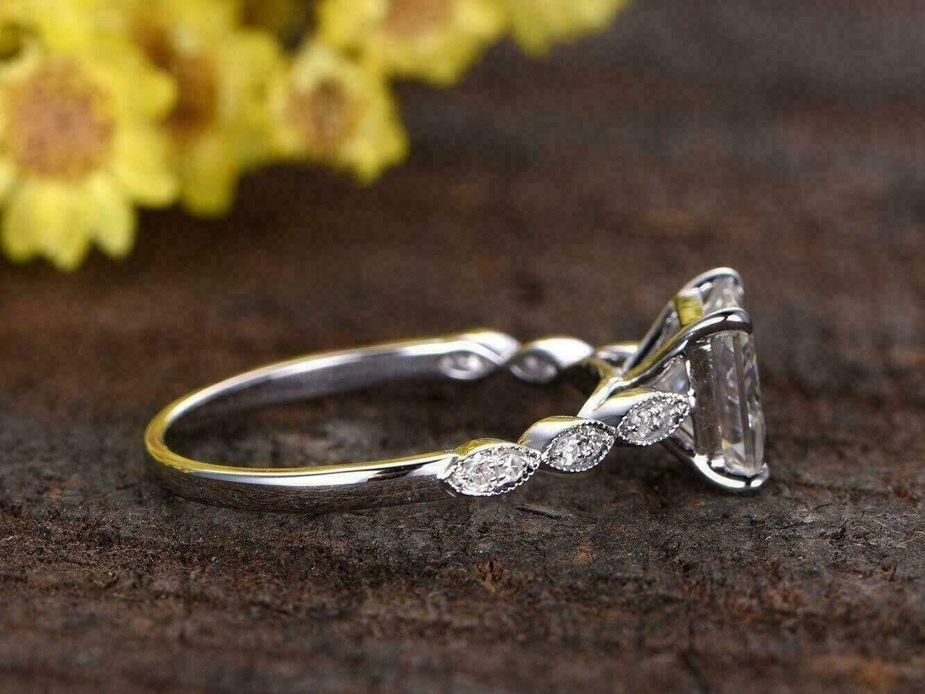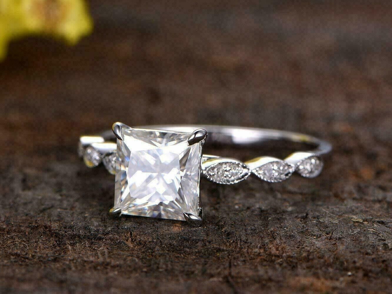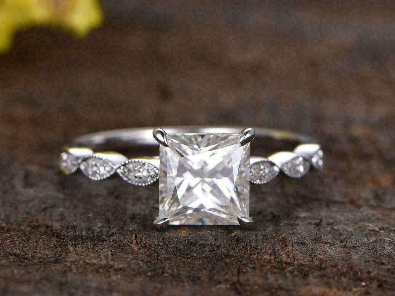 2Ct Princess Cut Simulated Diamond Art Deco Engagement Ring 14K White Gold Over