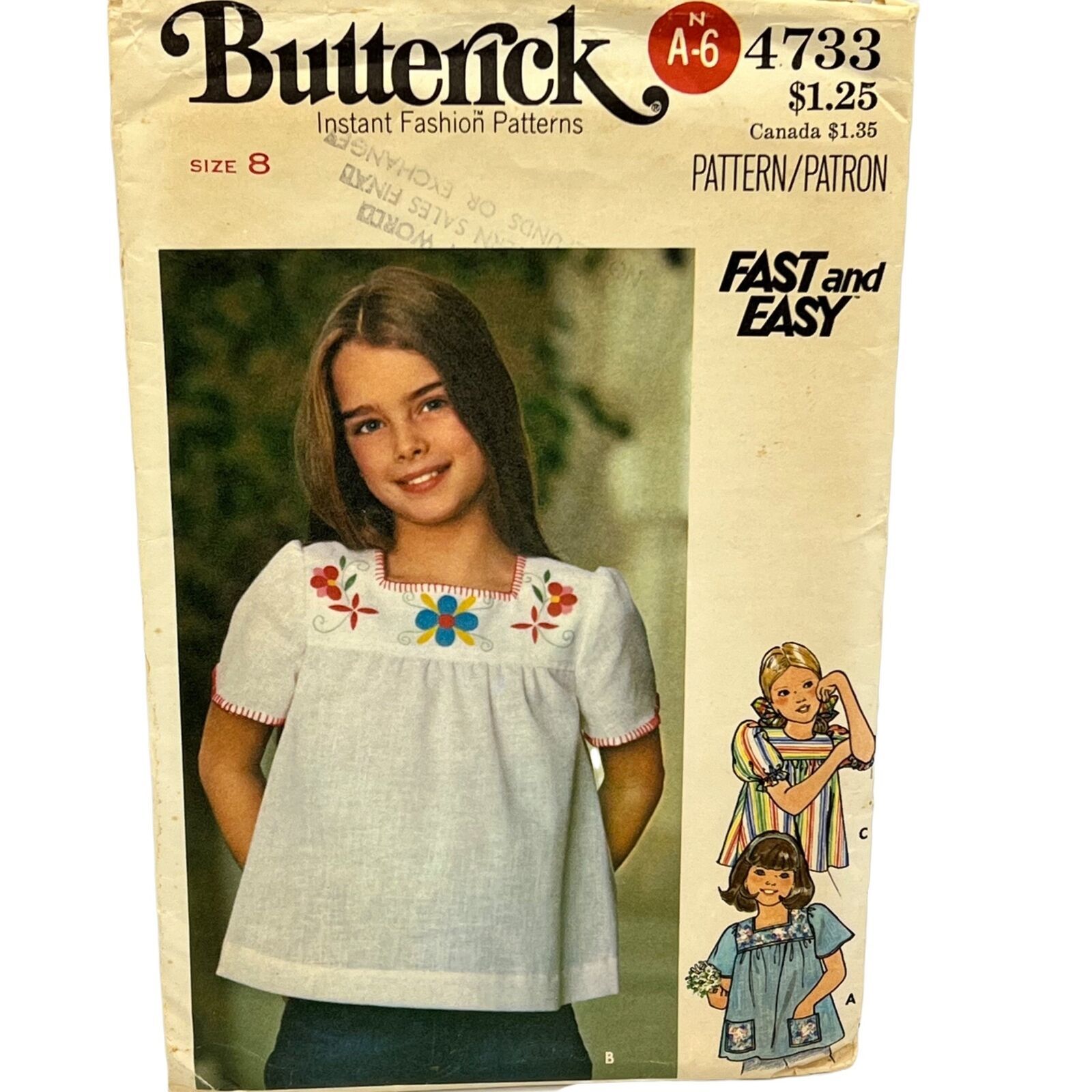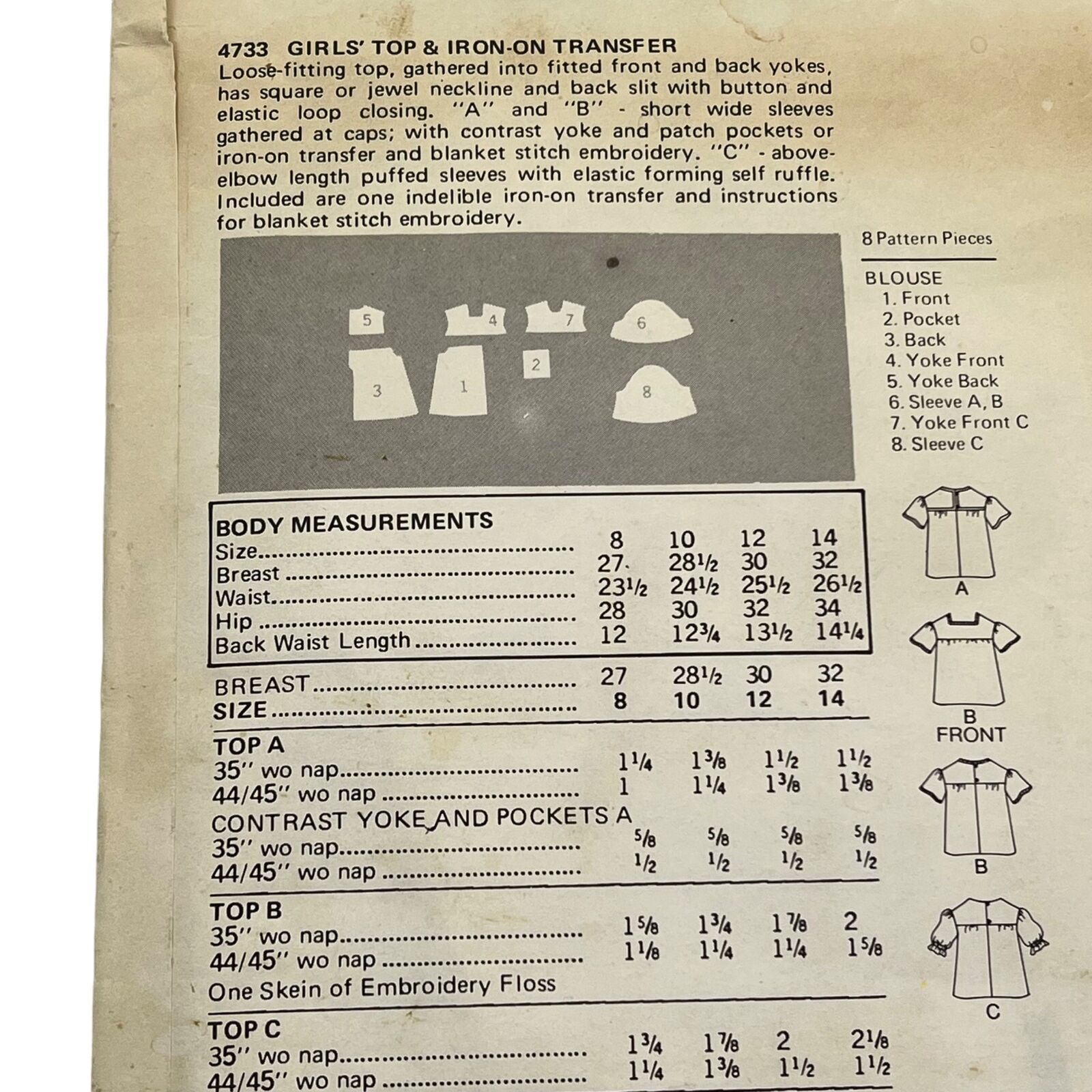 Butterick Vintage Sewing Pattern Girls Smock Top & Iron-On Sz 8