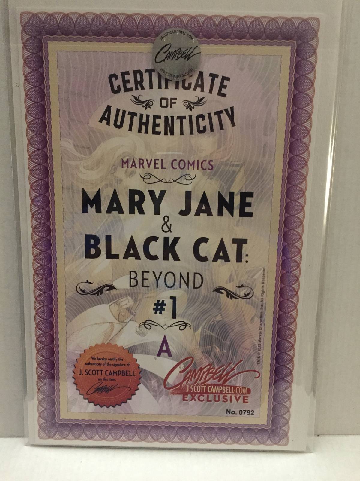 2022 Marvel Mary Jane Black Cat Beyond J Scott Campbell Variant #1 Signed with COA.