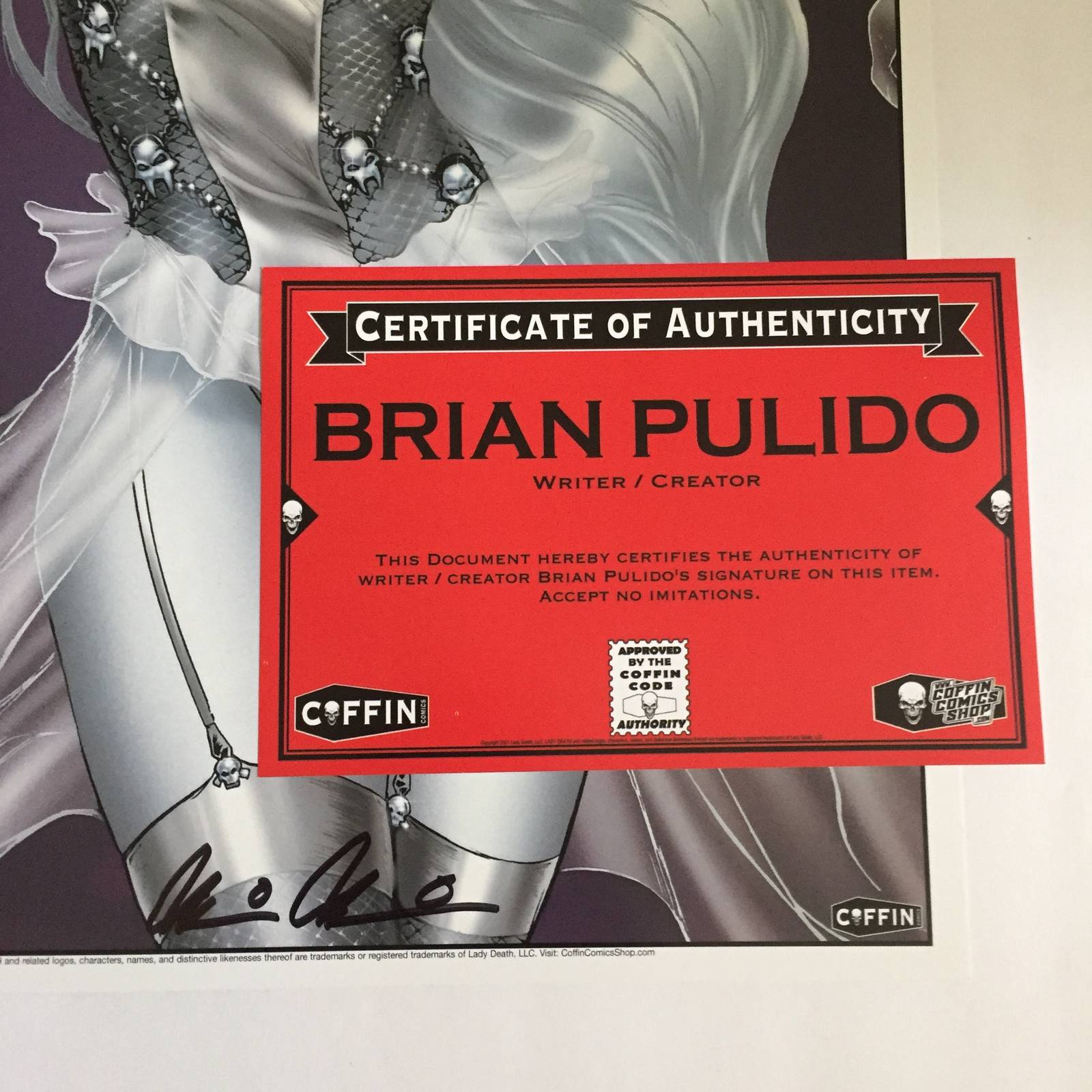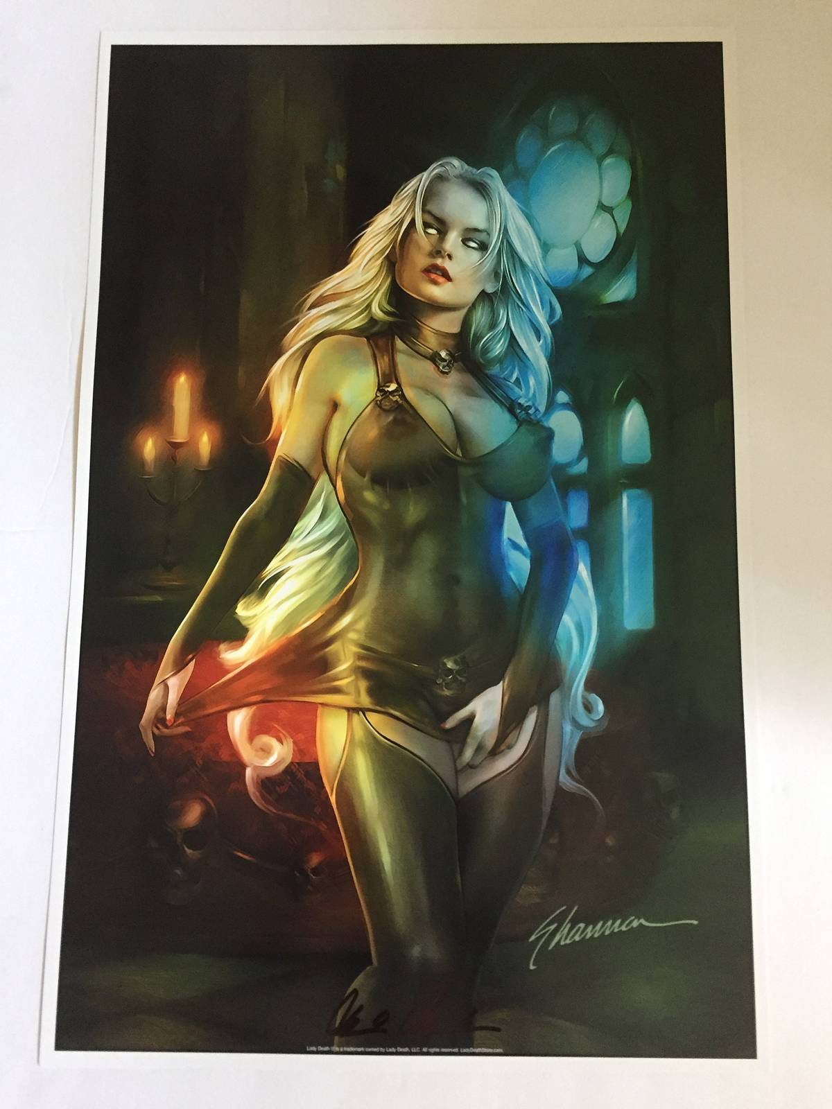 Lady Death Merciless Onslaught Art by Shannon Maer 11'' x 17'' Diego Bernard Print Signed by Brian Pulido.