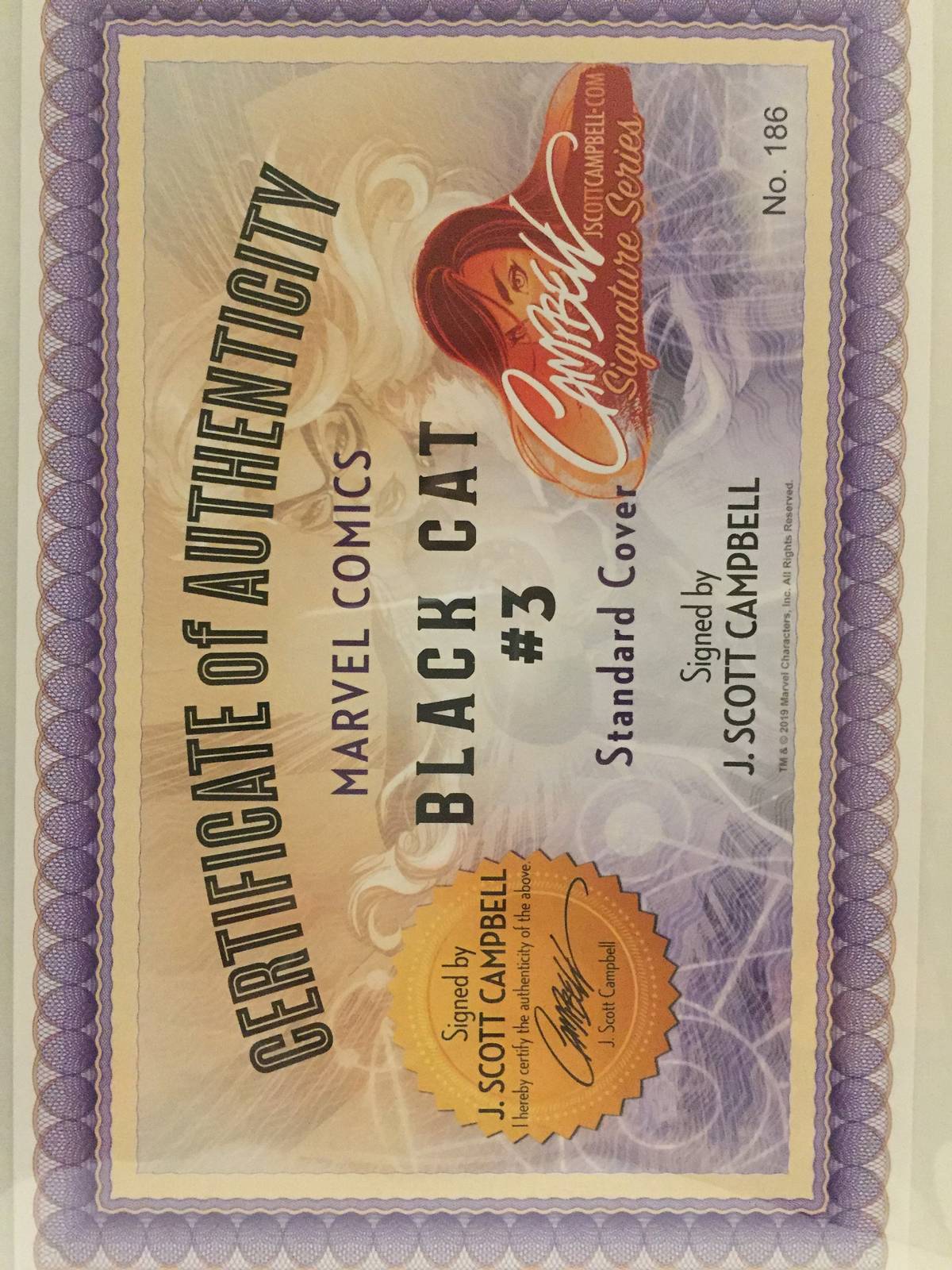 2019 Marvel Black Cat Variant #3 Signed by J Scott Campbell with COA