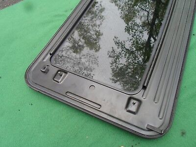 2000 - 2004 Subaru Legacy Sedan OEM Sunroof Glass. The sunroof is in good used condition. Measurements are 34" long and 17" wide. We have included the measurements so you can match it to the sunroof you need. ***This sunroof came standard on Subaru Legacy Sedan model years 2000 thru 2004 but please double check your measurements to ensure a perfect fit. Aftermarket sunroofs have become very popular over the last 10 years, this is why it is so important to double check your measurements and bolt patterns (see pictures). If your sunroof switch looks like any in our last picture, you have an aftermarket, not OEM. This glass panel was removed from a Subaru that had a blown engine so there is no unseen damage on this panel as is found with a majority of sunroof glass panels that are removed from wrecked vehicles. Often times on a wrecked vehicle, the metal trim around the glass, under the seal, will incur slight bends which will make the panel leak soon after. We have been dealing in sunroof glass panels for 20 years now and only sell the panels that come through our shop that are off of vehicles that have not been in major accidents. We also 100% inspect and clean the panels, especially the seals, in an effort to identify any imperfections that may cause issues down the road. Please double check your measurements against the ones I have listed to ensure a good fit. The glass panels are inspected after removal from the vehicle as the seals can be easily damaged during the removal process. The sunroof comes read to bolt in. Please contact us with any questions that you may have.