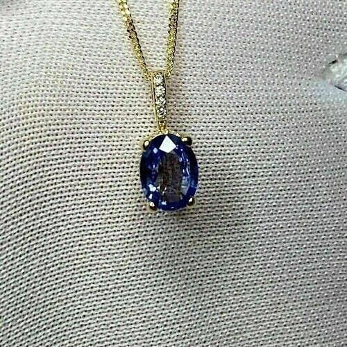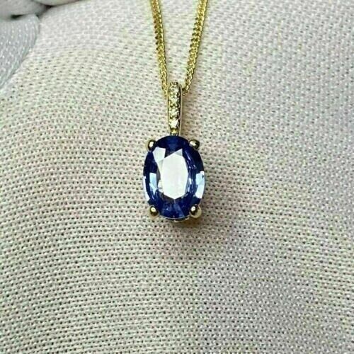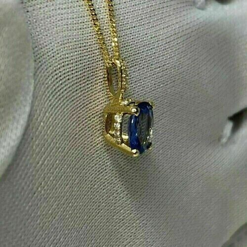 4Ct Oval Cut Simulated Tanzanite Solitaire Pendent Chain 14K Yellow Gold Finish