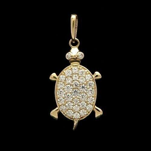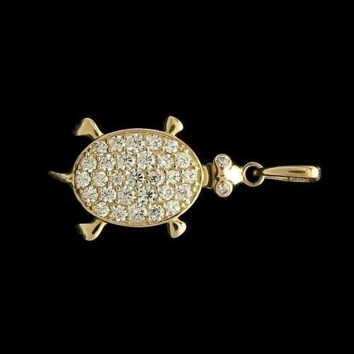 0.20Ct Round Cut Simulated Diamond Turtle Pendant 14K Yellow Gold Finish