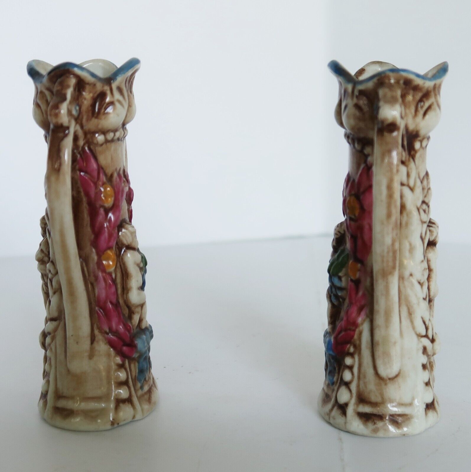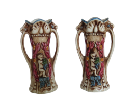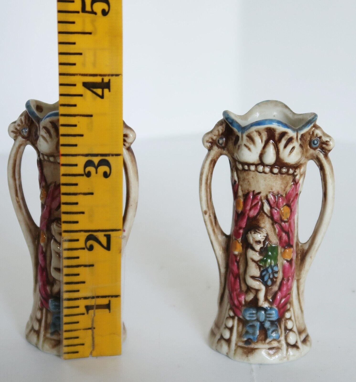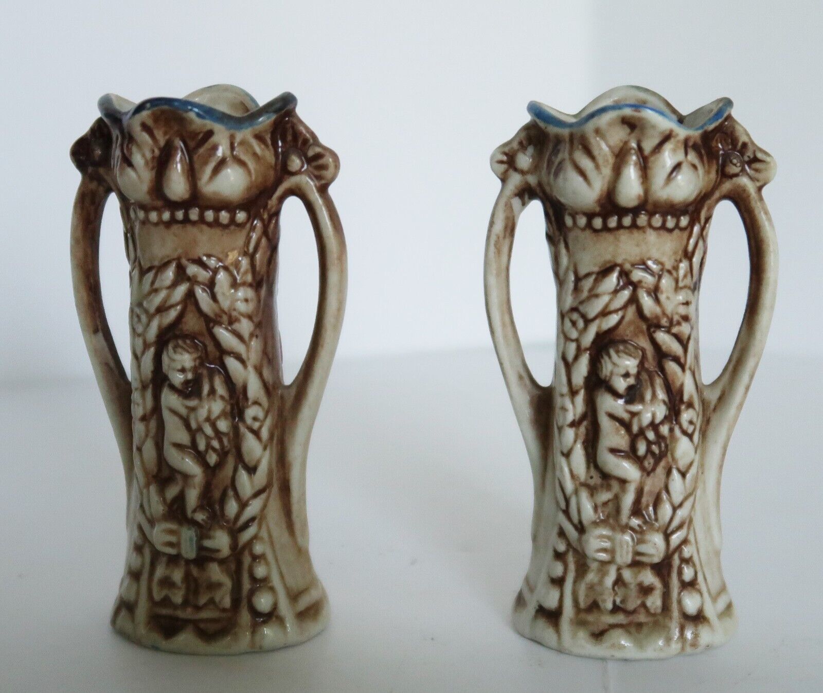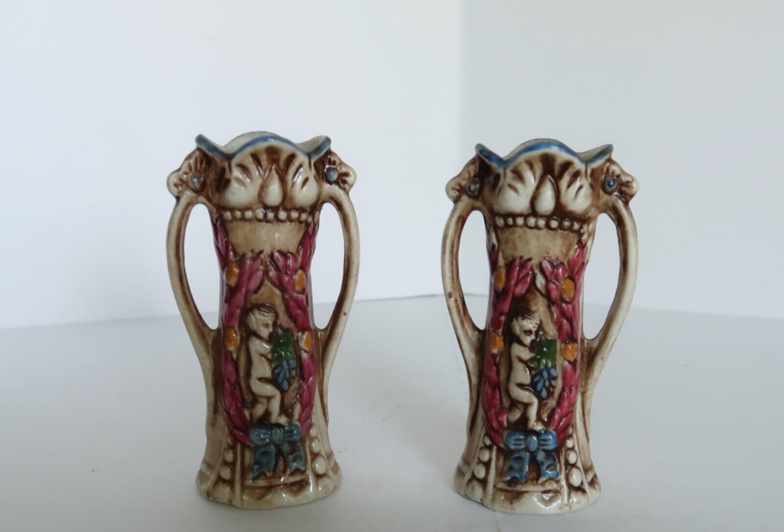 Pair of tiny Antique German ceramic bud vases with cherub design