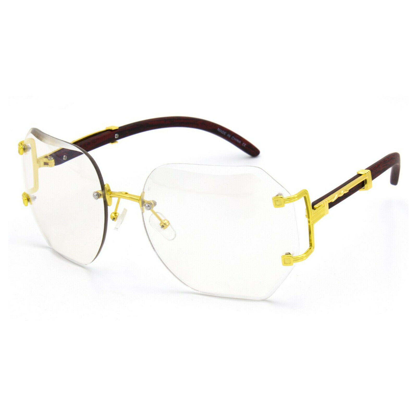 Classy Elegant Exotic Retro Style Clear EYE GLASSES Rimless Gold Wooden Frame