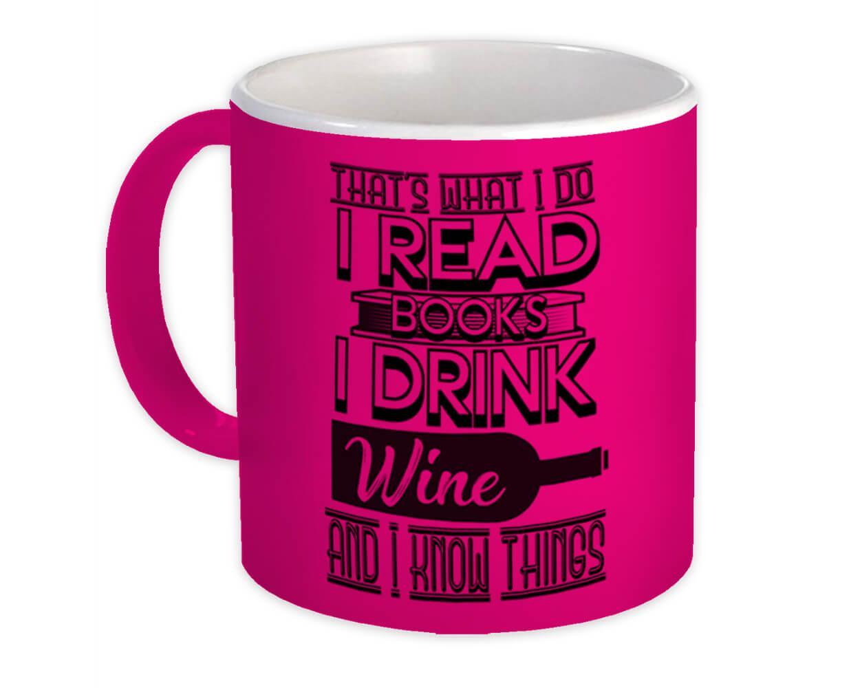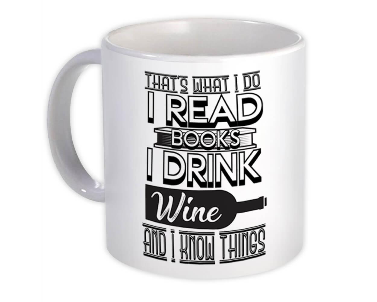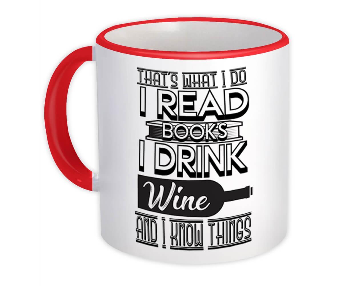 For Book And Wine Lover : Gift Mug Reader Funny Cute Art Print Friendship Cowork