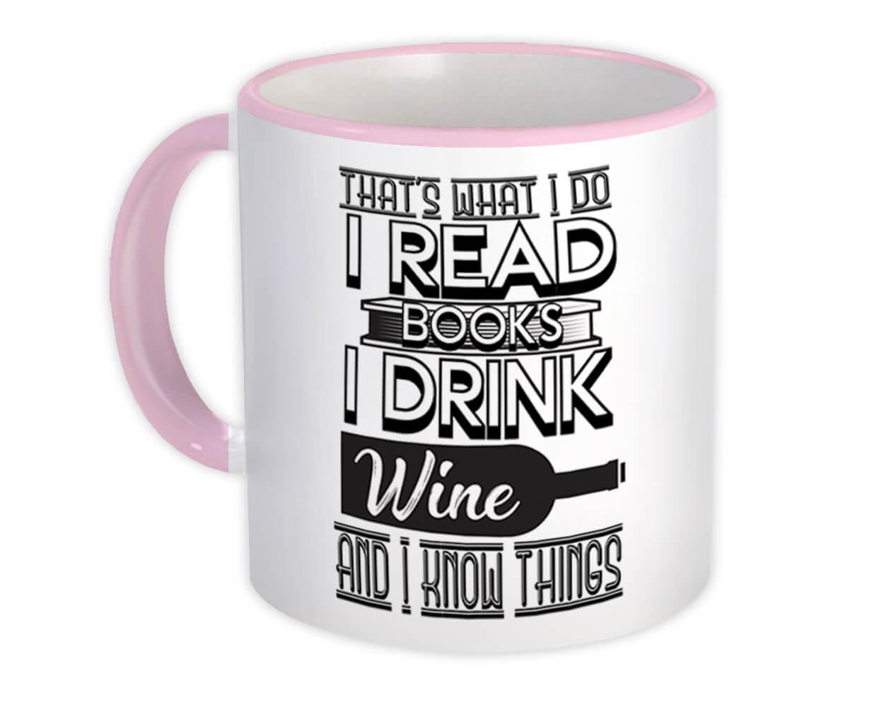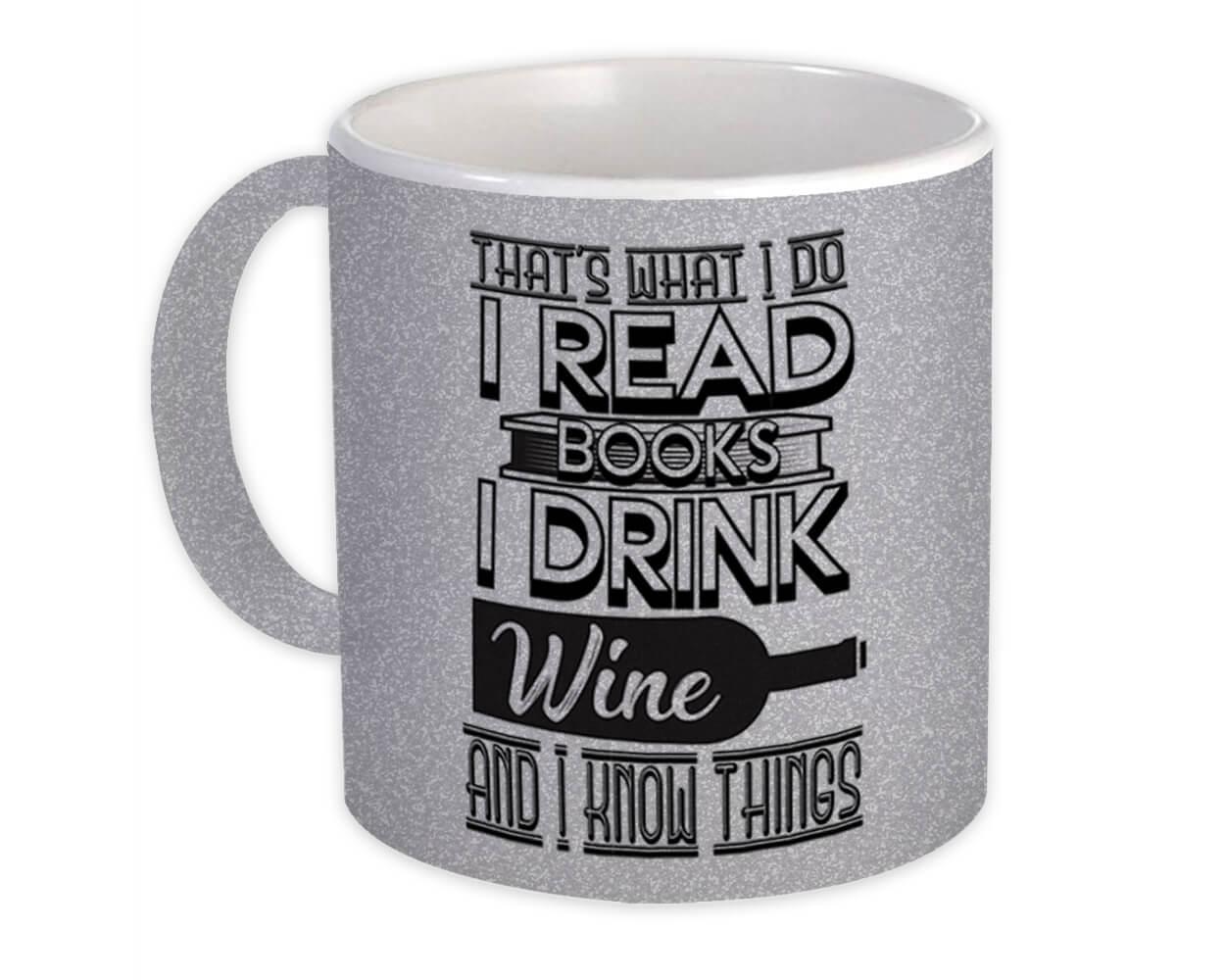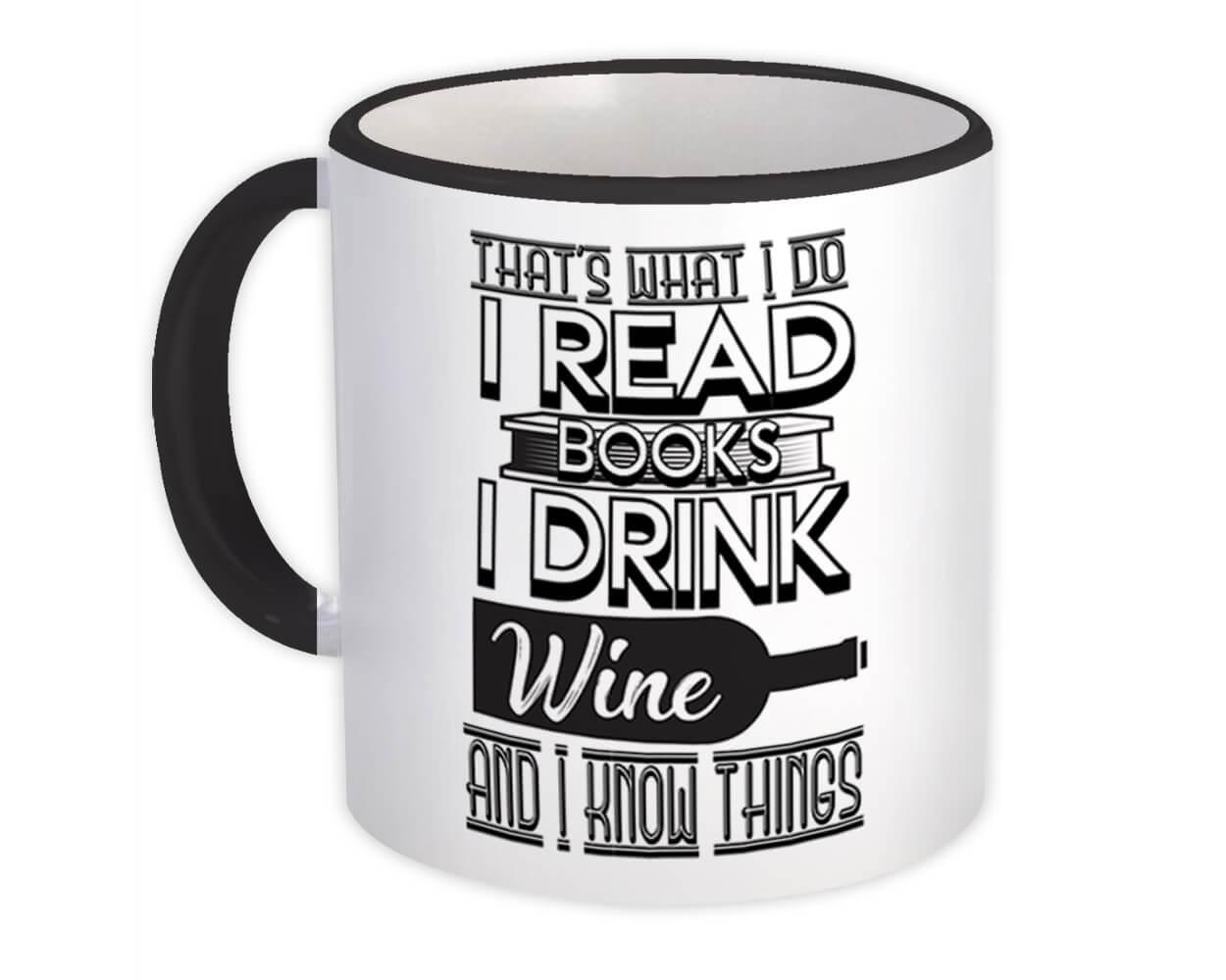 For Book And Wine Lover : Gift Mug Reader Funny Cute Art Print Friendship Cowork