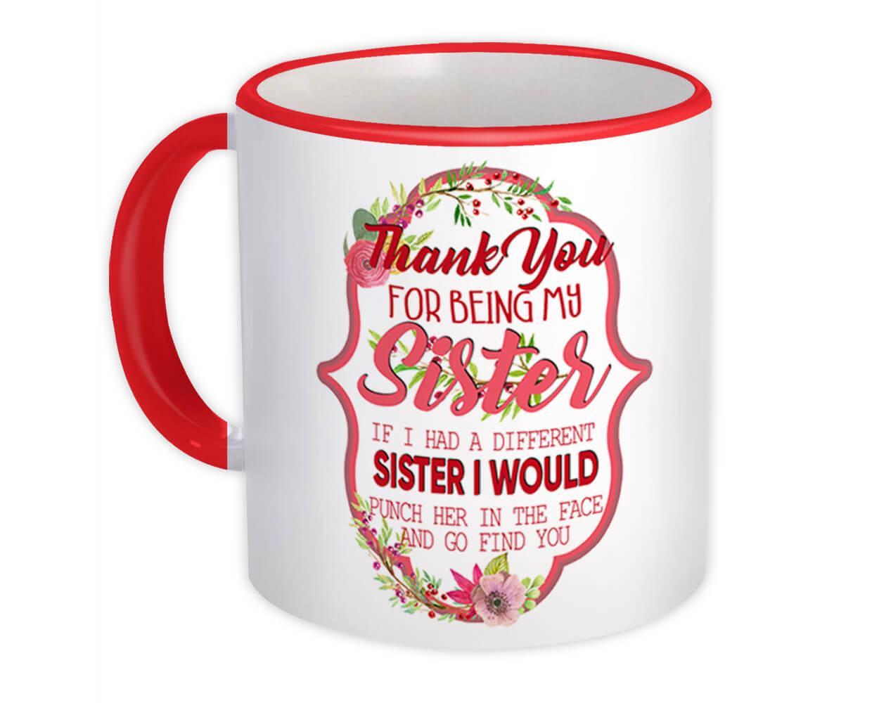 Thanks You For Being My Sister : Gift Mug Birthday Flowers Family Cute Quote Art