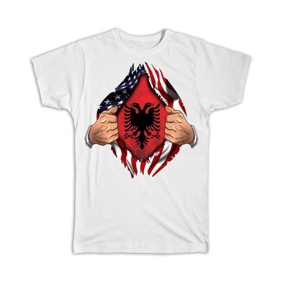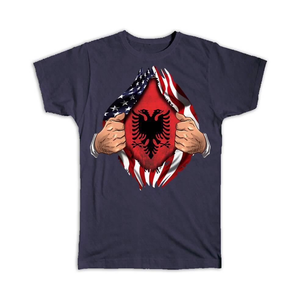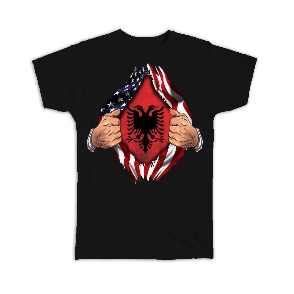 Albania : Gift T-Shirt Flag USA American Chest Albanian Expat Country