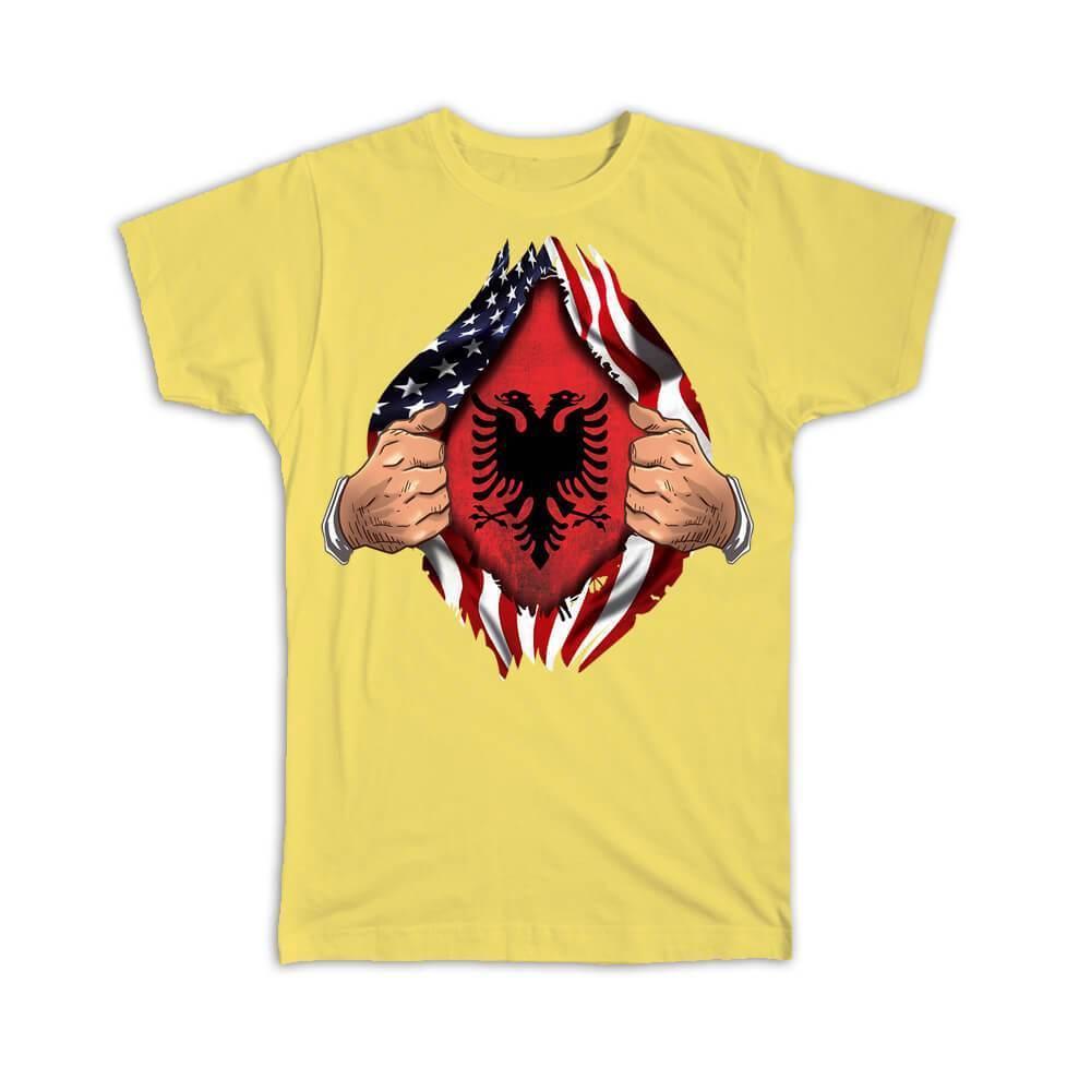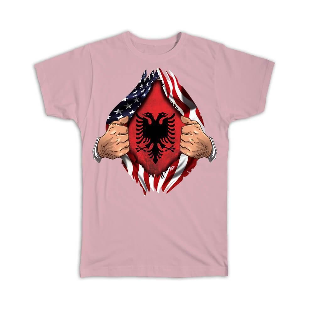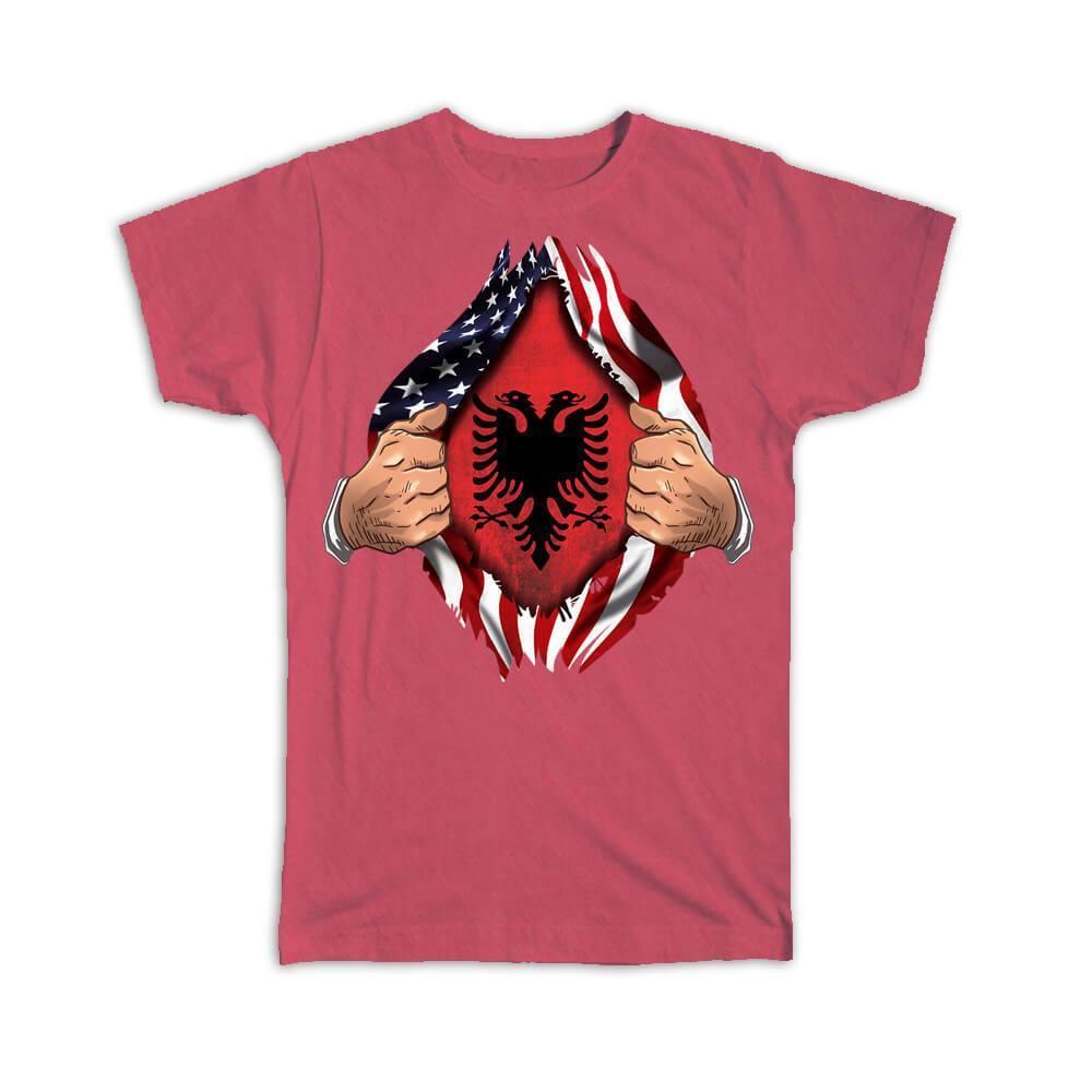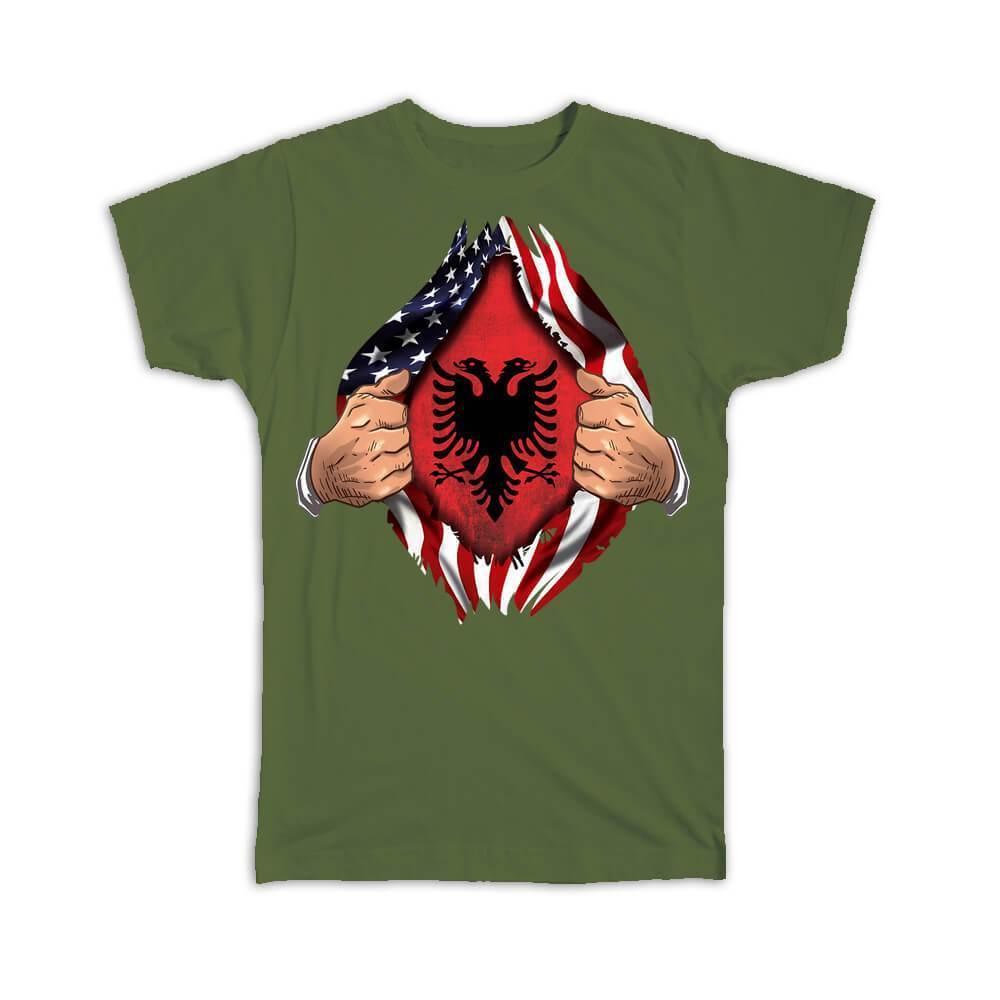 Albania : Gift T-Shirt Flag USA American Chest Albanian Expat Country