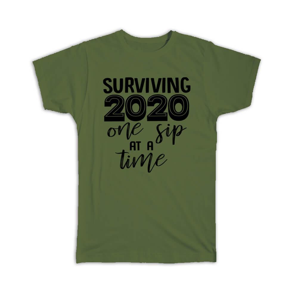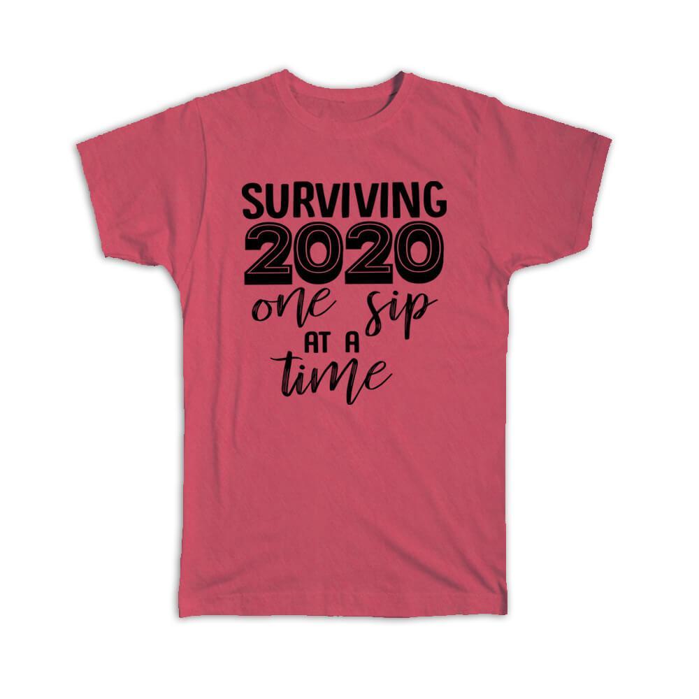Surviving 2020 One Sip at a Time : Gift T-Shirt Quarantine Wine Funny Joke