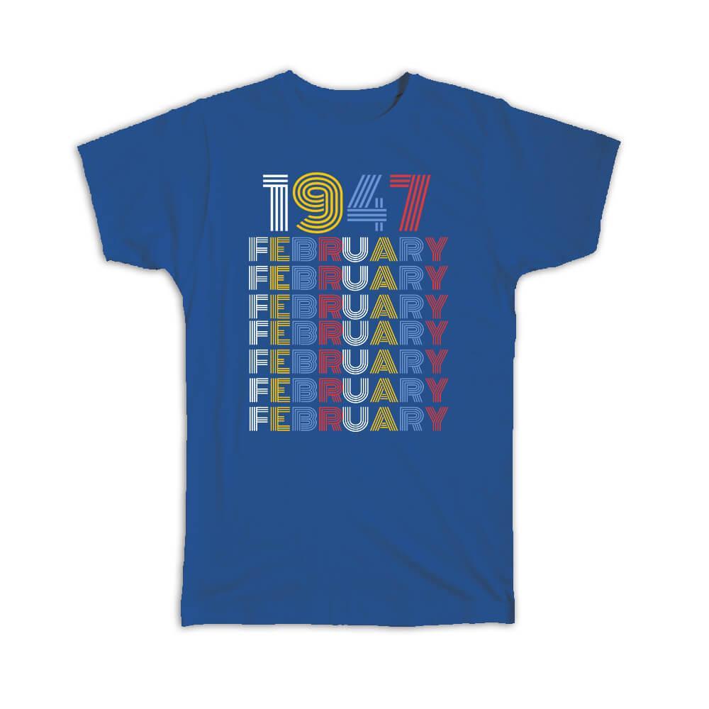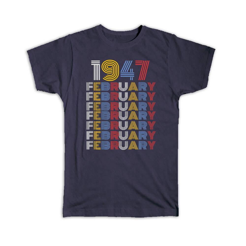 1947 February Colorful Retro Birthday : Gift T-Shirt Age Month Year Born