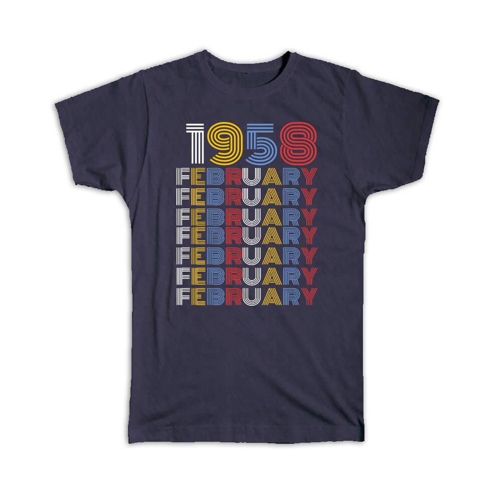 1958 February Colorful Retro Birthday : Gift T-Shirt Age Month Year Born