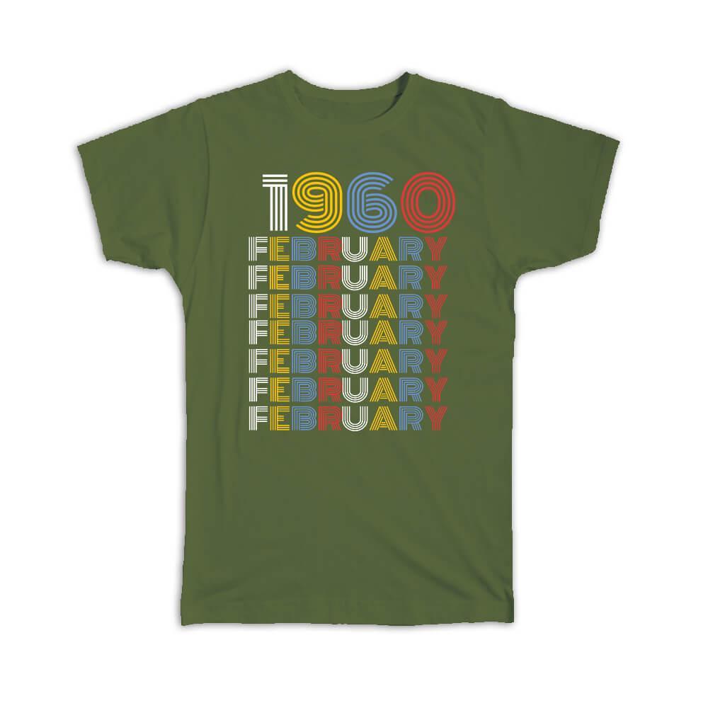 1960 February Colorful Retro Birthday : Gift T-Shirt Age Month Year Born