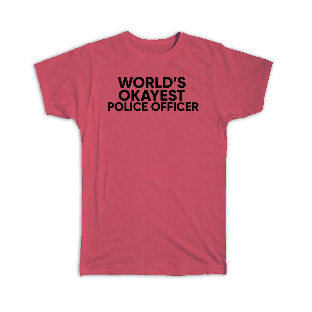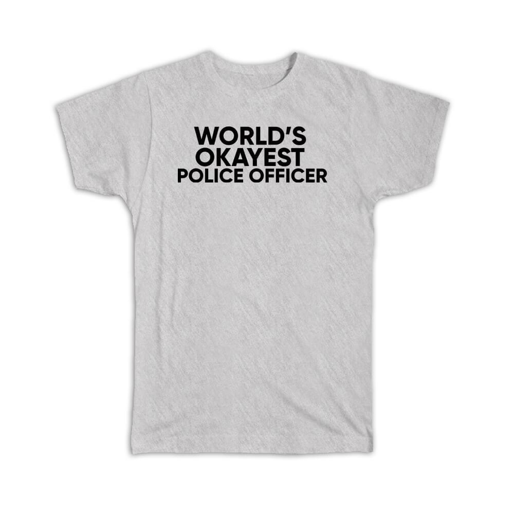 Worlds Okayest POLICE OFFICER : Gift T-Shirt Text Family Work Christmas Birthday