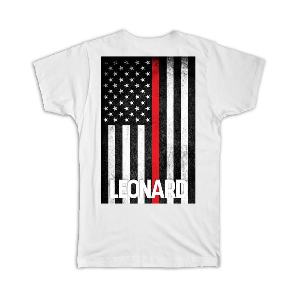 LEONARD Family Name : Gift T-Shirt American Flag Firefighter Thin Line Personali
