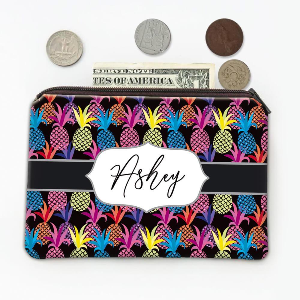 Colorful Pineapple : Gift Coin Purse Black Pattern Sweet Sixteen Friends Teen Pa