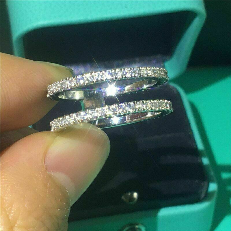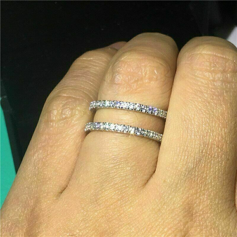 Fede nuziale mezza eternità con diamante a taglio rotondo da 2 ct e...