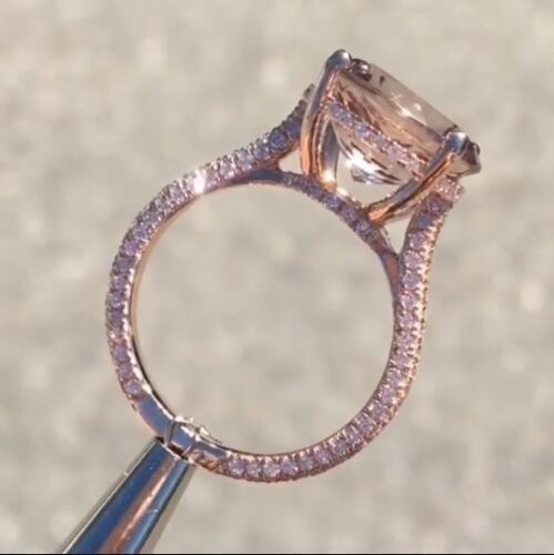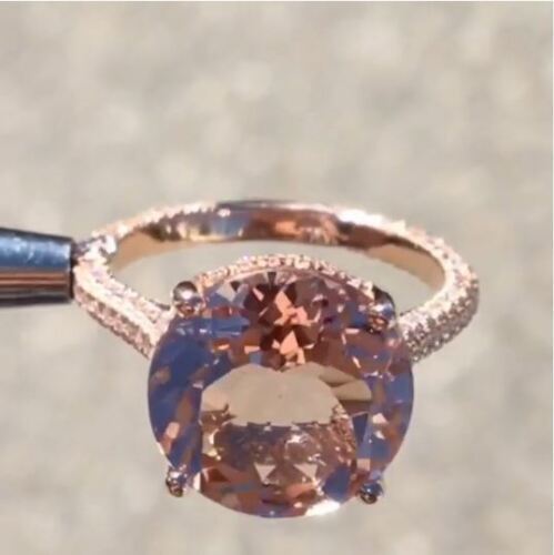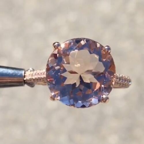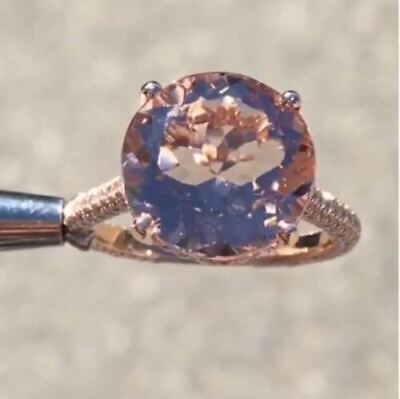 Fede nuziale di fidanzamento solitario Morganite a taglio rotondo da 4 kt...